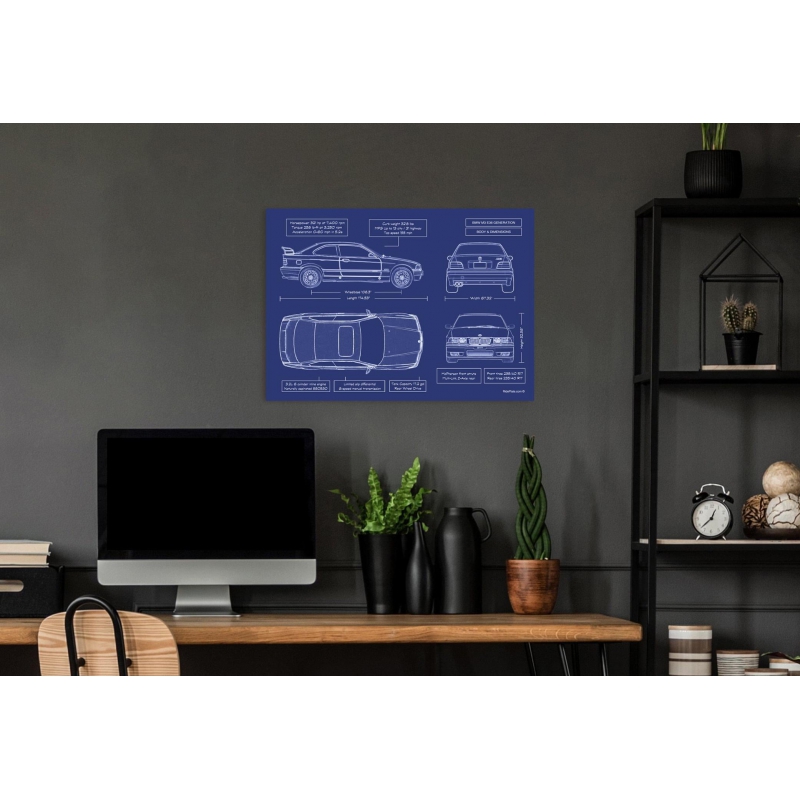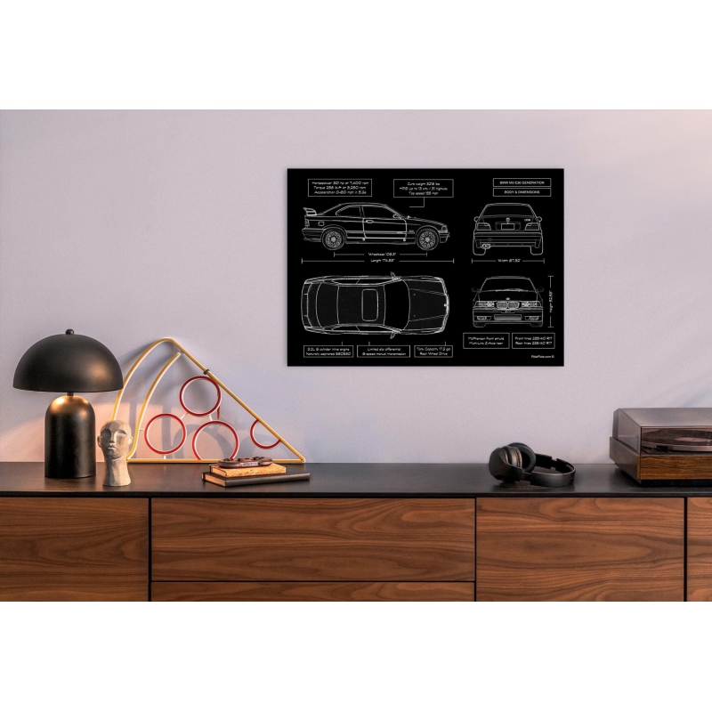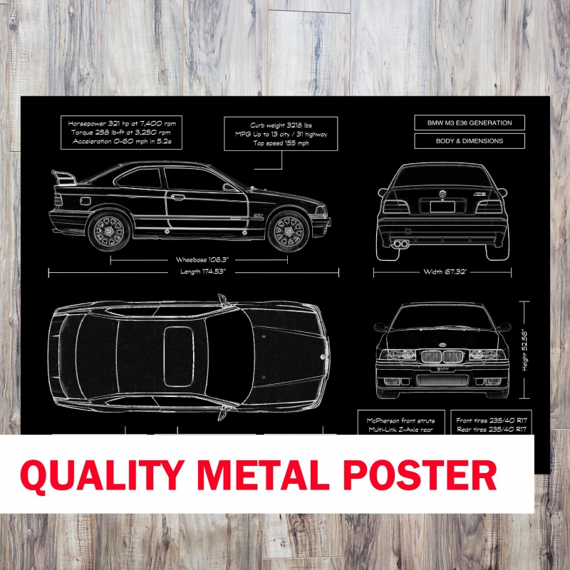 This isn’t just artwork—it’s an elite tribute to one of BMW’s most beloved performance coupes: the M3 E36 from 1990-2000. Printed directly onto premium brushed metal, it radiates a museum-quality matte finish that elevates the raw power of this driving icon into a statement piece for your wall.