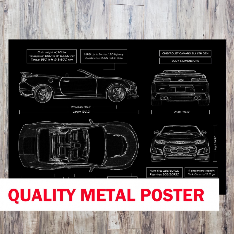 Chevrolet Camaro ZL1 6th Gen Convertible Metal Poster – 2016–2020 Muscle Car Wall Art, Custom Gift for Doctors, Gearheads & Car Enthusiasts