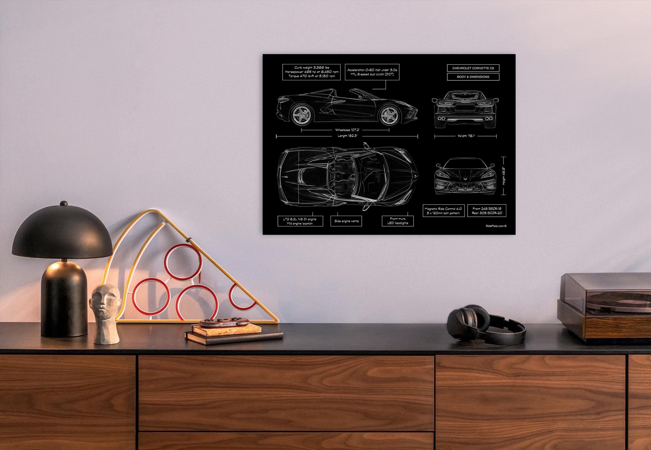 Whether adorning your garage, office, or serving as the perfect gift for a car enthusiast, this piece brings the spirit of the Corvette C8 Convertible to life.