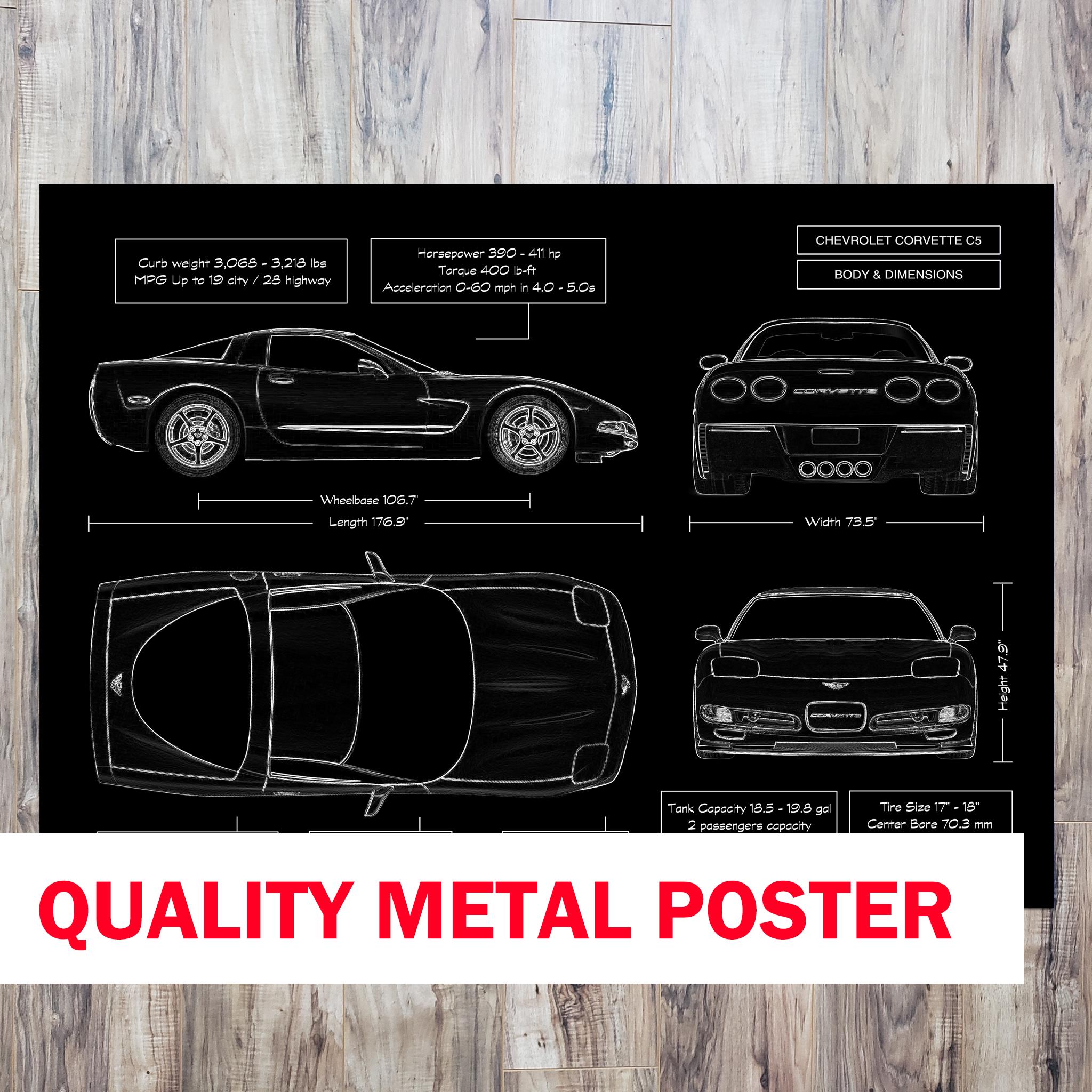 Some people hang art. Others hang horsepower. This precision-crafted metal wall poster pays tribute to the legendary 1997–2004 Chevrolet Corvette C5 — a car that redefined American performance and design. Each piece captures the exact engineering lines and details that made the C5 an icon, printed directly on durable brushed metal with a sleek matte finish.