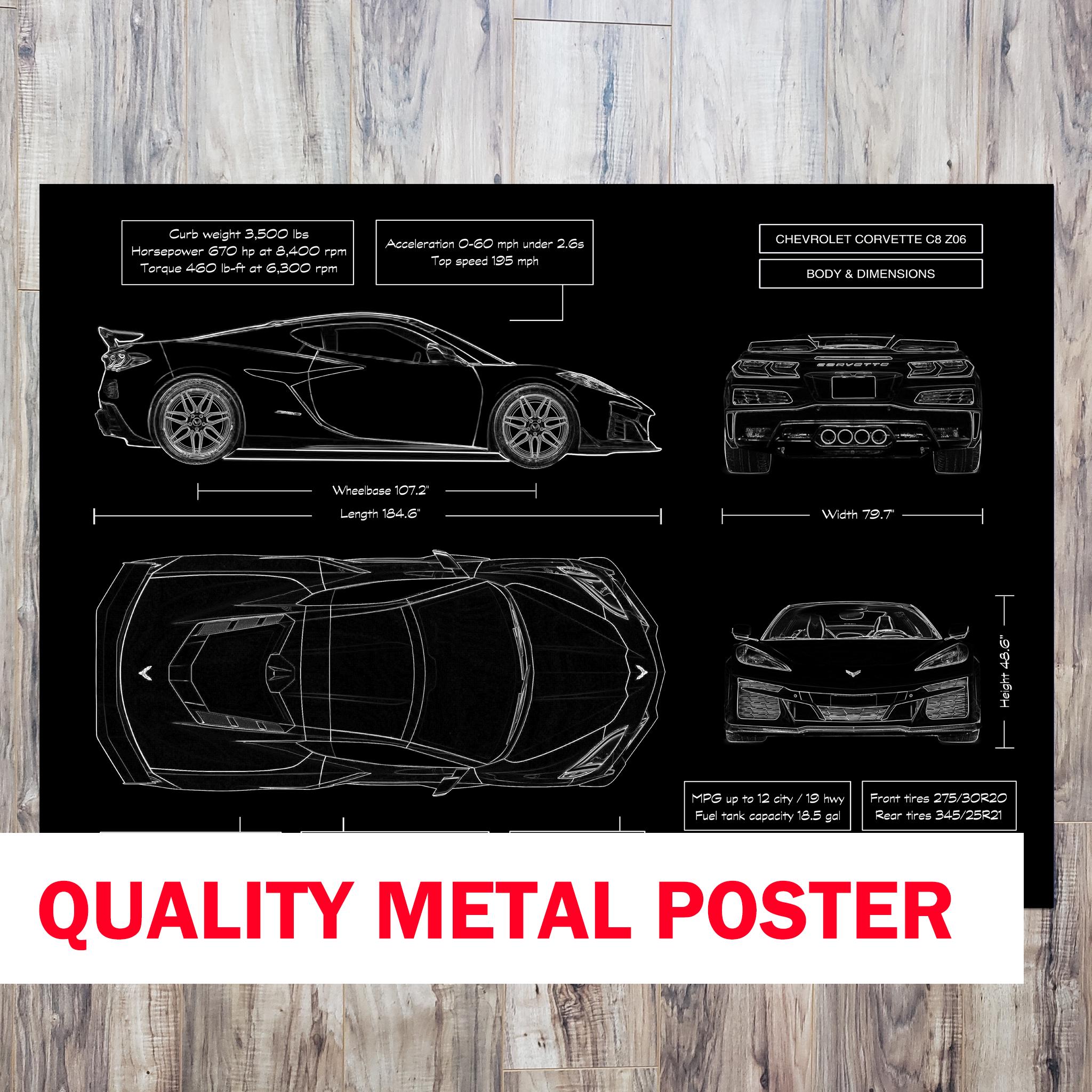 Some admire art. Others admire horsepower. This precision-crafted metal wall poster celebrates the 2020–2024 Chevrolet Corvette C8 Z06 Coupe — a pinnacle of American performance and design. Printed on durable brushed metal with a sleek matte finish, it captures every line and detail of the C8 Z06 Coupe blueprint, transforming engineering into stunning wall art.