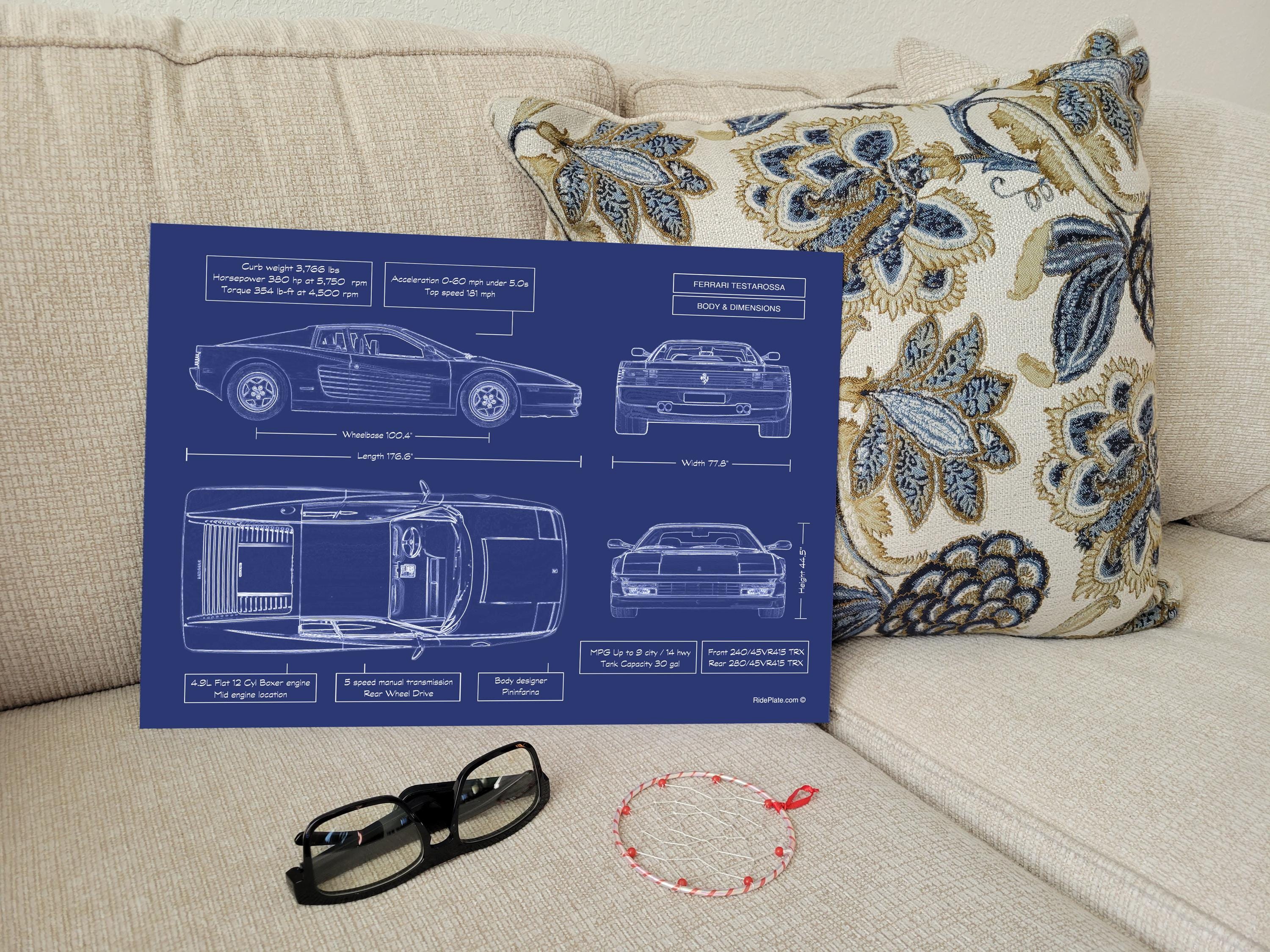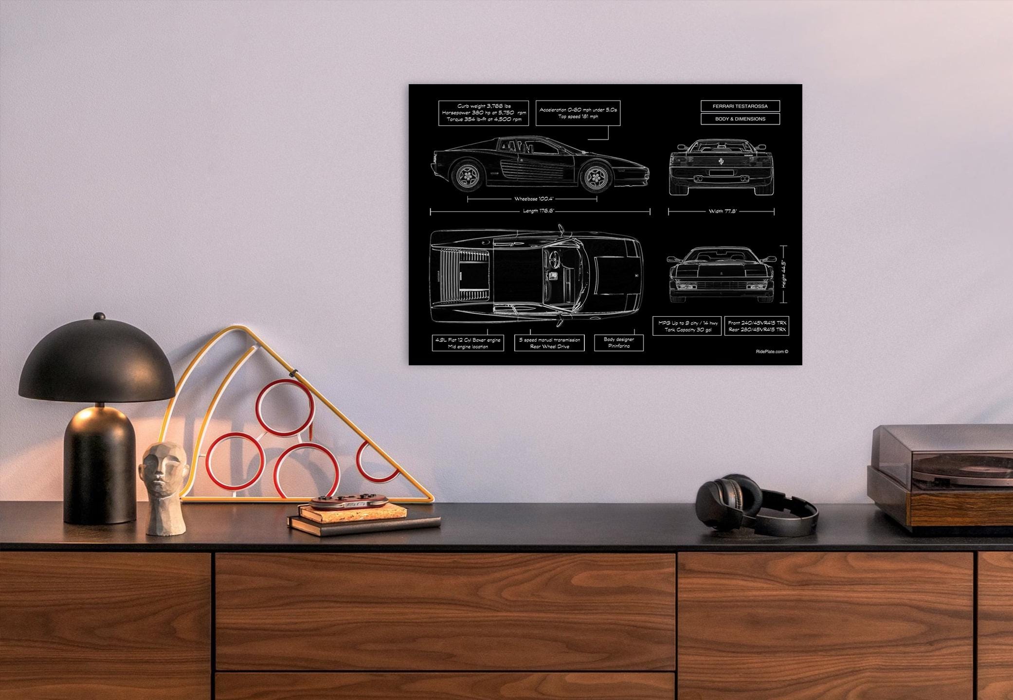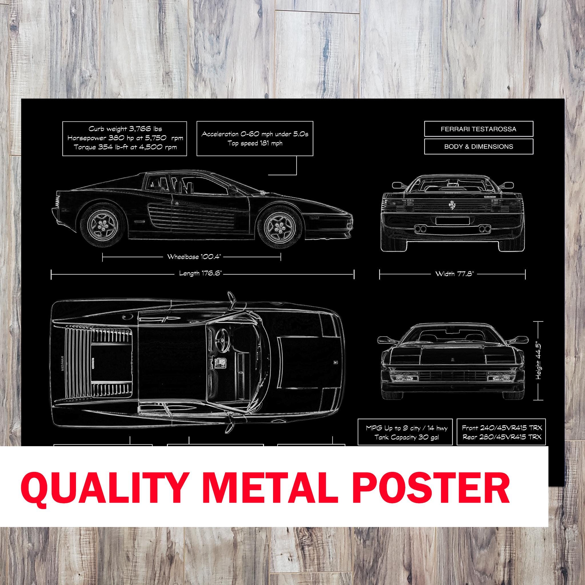 This isn’t just a poster — it’s a premium metal-print experience of one of Ferrari’s most legendary supercars, the Testarossa. Printed directly on brushed metal, it delivers a museum-quality matte finish that brings every detail—from the flat-12 engine to the stealthy side-vent styling—into sharp, elegant form. For the person who values design, performance, and distinction, this piece becomes truly personal when you add their name or the car’s VIN free of charge.