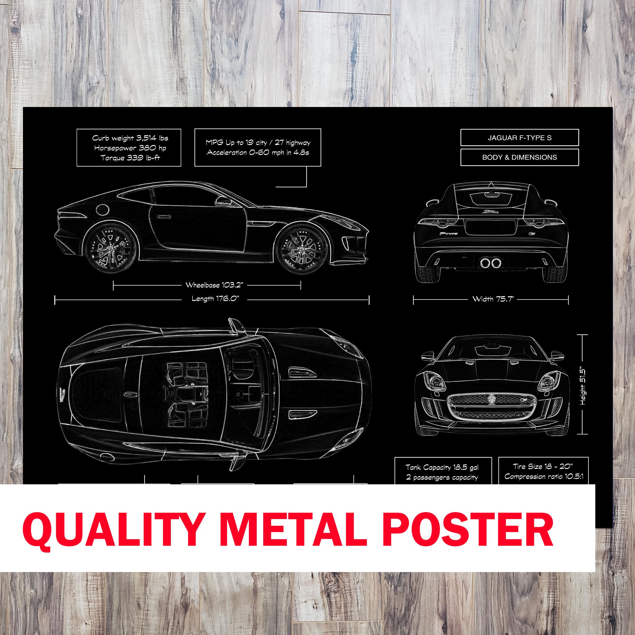 This premium Jaguar F-TYPE S Blueprint Metal Poster (2013–2019) turns precision engineering into gallery-worthy décor. The artwork is printed directly on brushed metal, creating a refined matte effect with depth and clarity that ordinary paper can’t touch. For the hard-to-buy car lover, doctors, entrepreneurs, or collectors, it’s a statement piece that feels as exclusive as the car it celebrates.