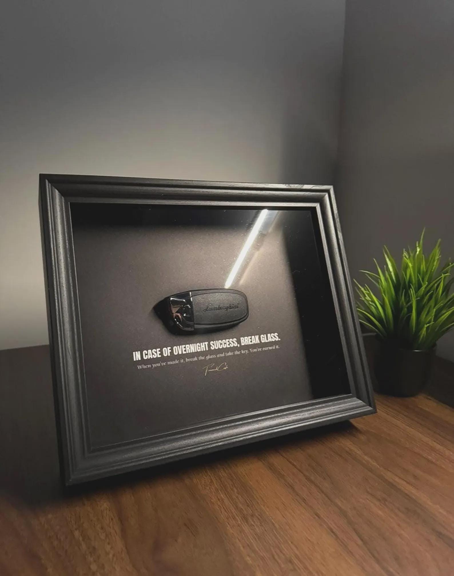 "When you’ve made it, break the glass and take the key. You’ve earned it."