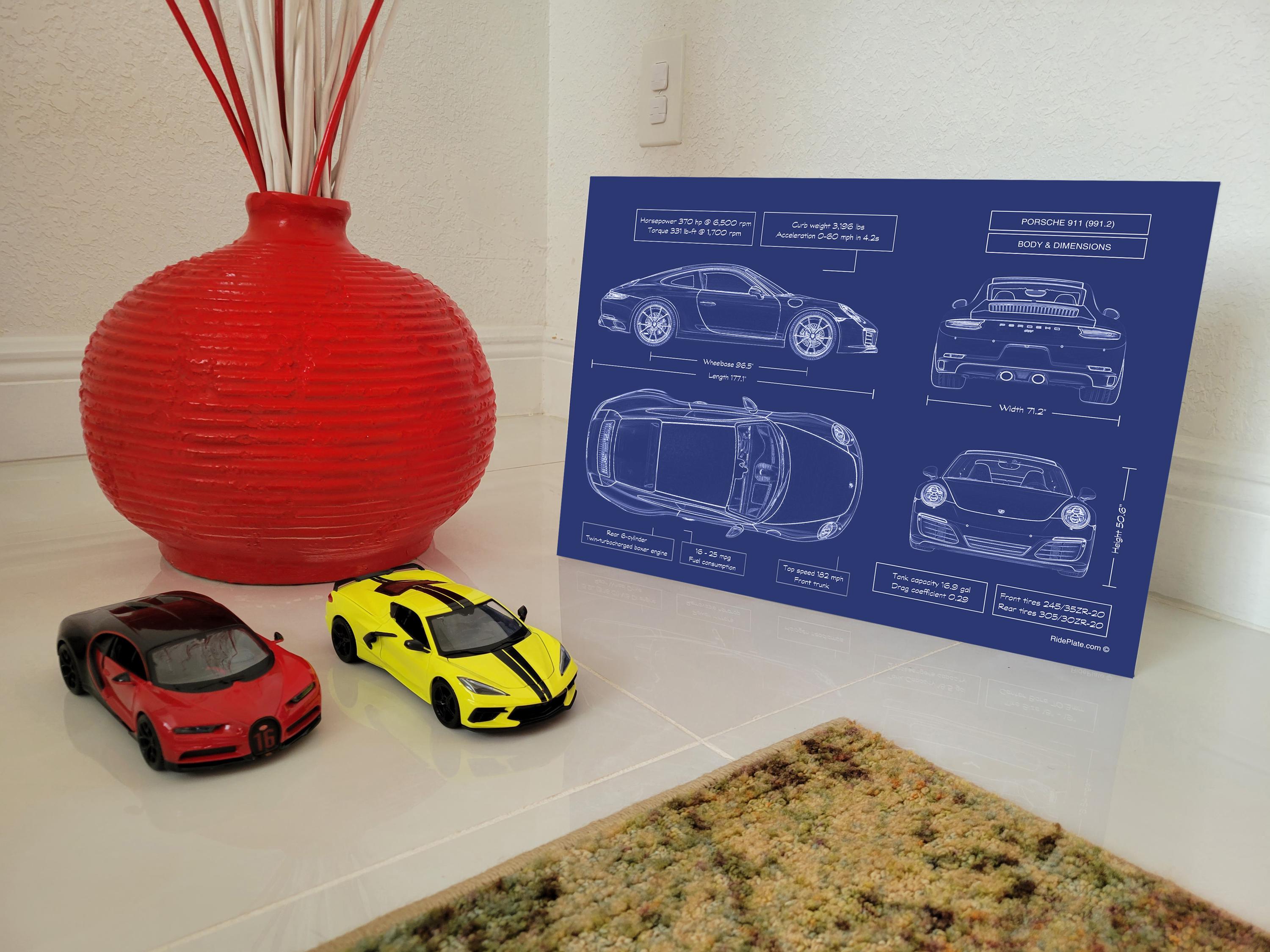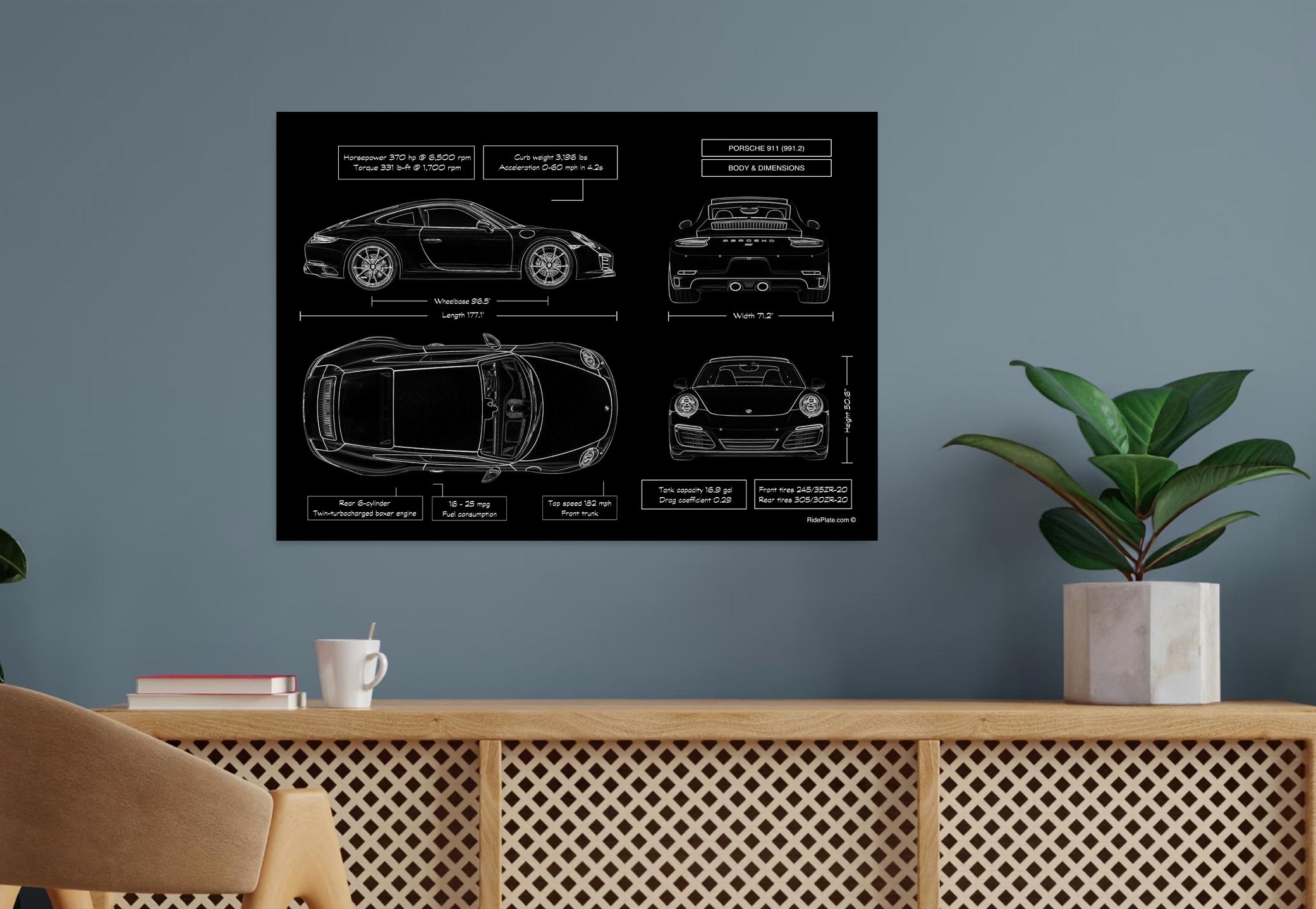 This exceptional metal-printed piece celebrates the Porsche 911 Coupe 991.2 (2016-2019) — the evolution of an icon with turbo-charged power and timeless style. Printed directly on brushed metal, it delivers a gallery-quality matte finish that brings every line, vent, and silhouette into sharp focus. Whether you hang it in a garage, executive office, man cave or showroom, this artwork makes a bold impact. For the gearhead, doctor, lawyer or entrepreneur who values refined power — personalize it free with their name or the car’s VIN. The included magnetic mounting system means you’re ready to display in under a minute—no tools, no drilling—just ready to dominate the wall.