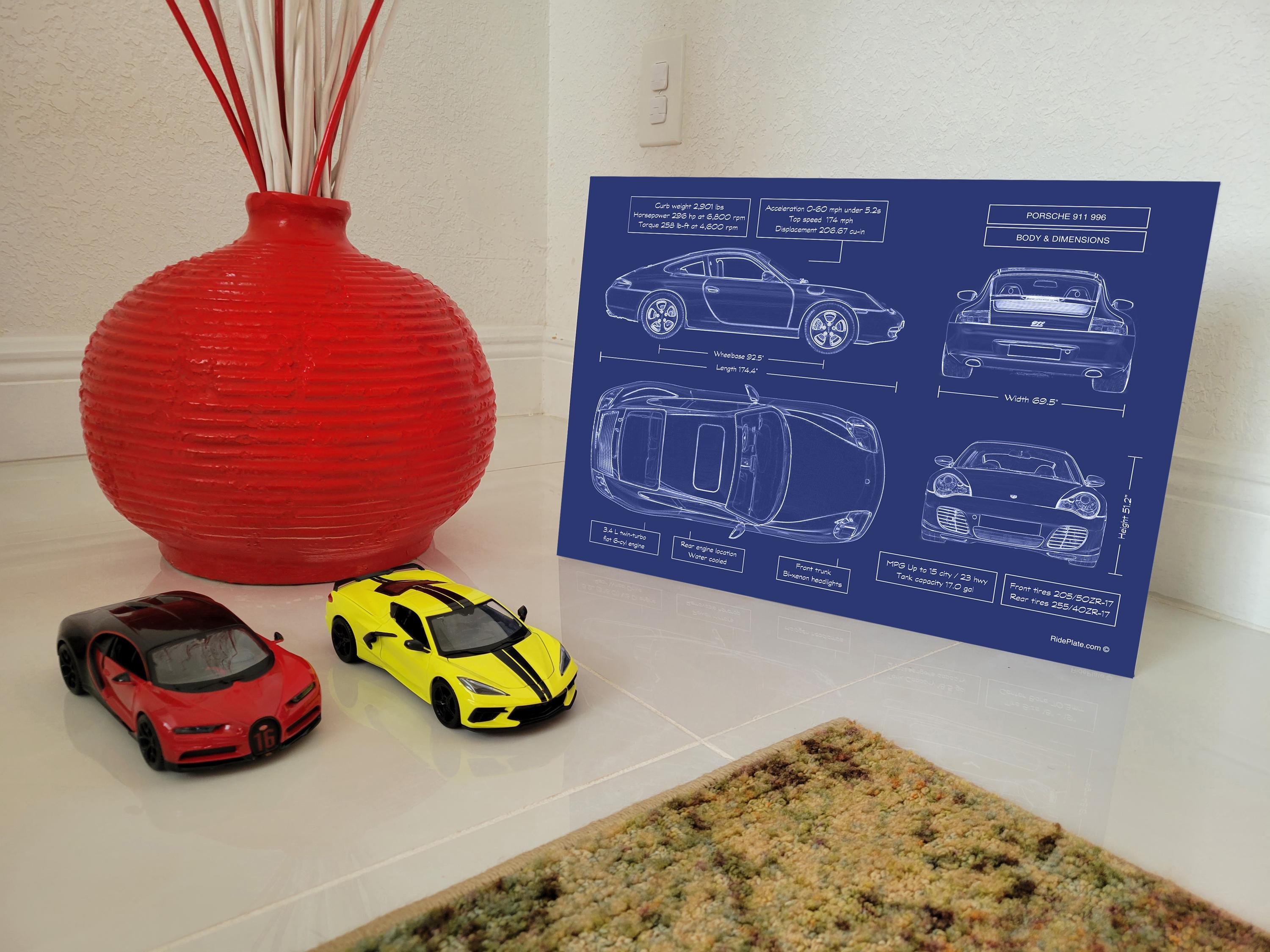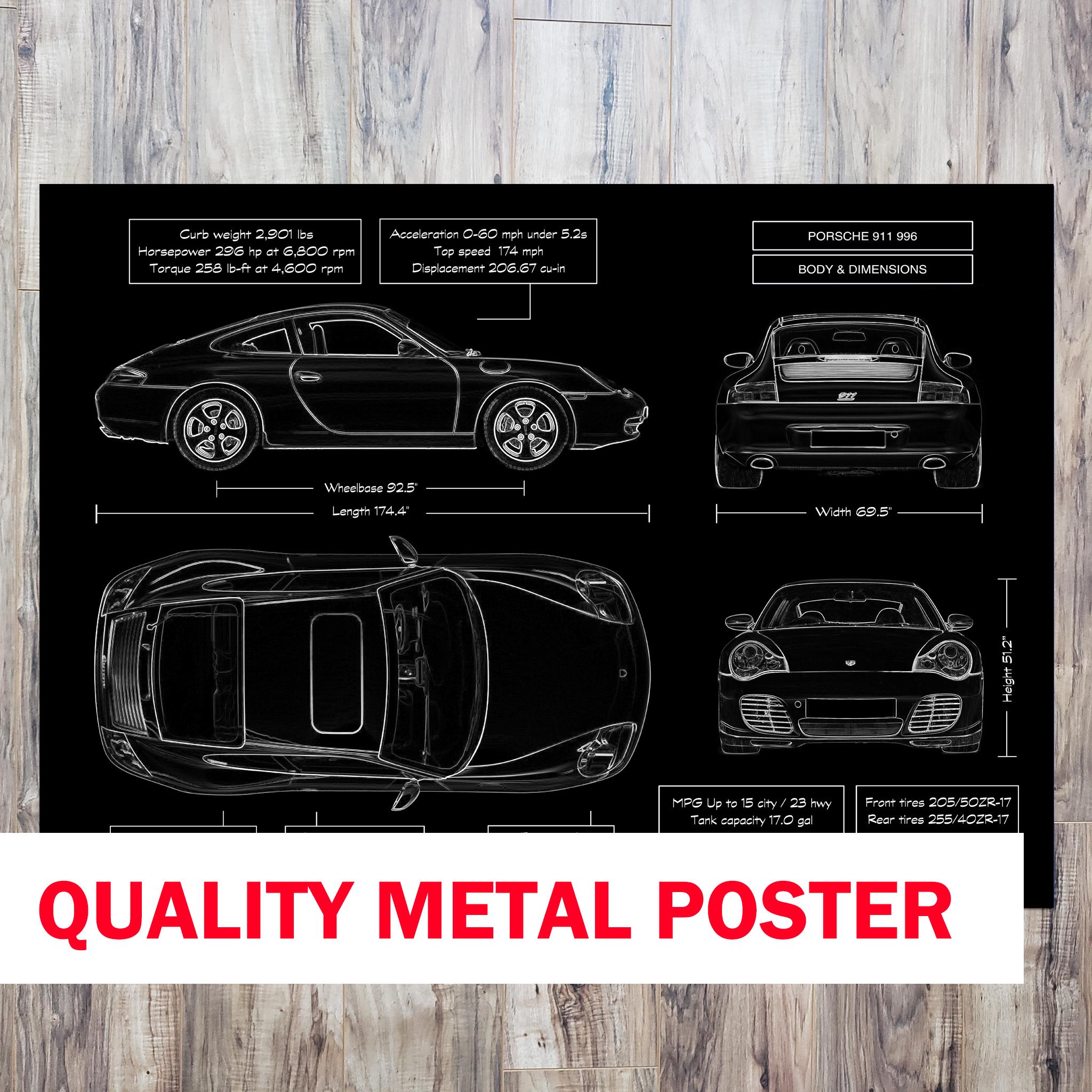 Porsche 911 996 1997-2005 Blueprint Metal Poster – Entry-Level 911 Wall Art for Garage, Office or Man Cave – Custom Gift for Car Lovers