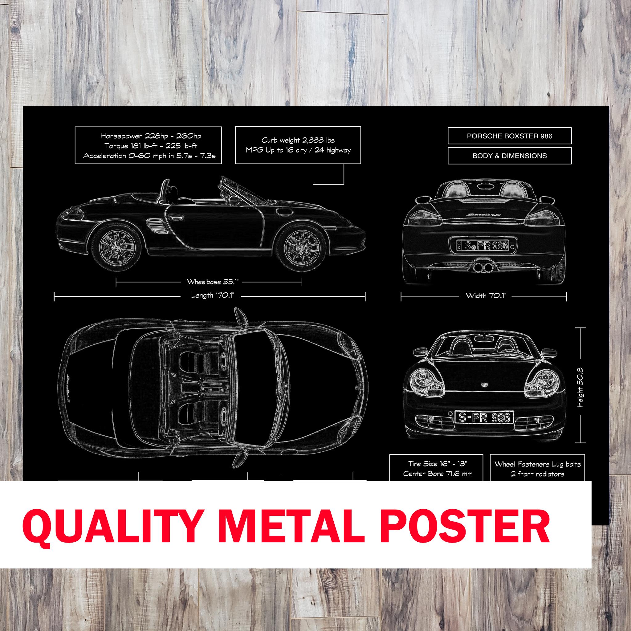 This premium, direct-to-metal printed poster celebrates the Porsche Boxster 986 (1996-2004) — a true roadster icon built for drivers who live for the drive. Printed on premium brushed metal and finished with a matte effect, it elevates every line, vent and silhouette into high-impact décor. Whether it’s gracing your garage wall, man cave, executive office, or showroom, this piece commands attention and respect. For the car lover, entrepreneur, doctor or enthusiast who demands excellence — personalize it for free with their name or the car’s VIN, and thanks to the included magnetic mounting system, you’ll have it displayed in under a minute—no tools, no drilling.