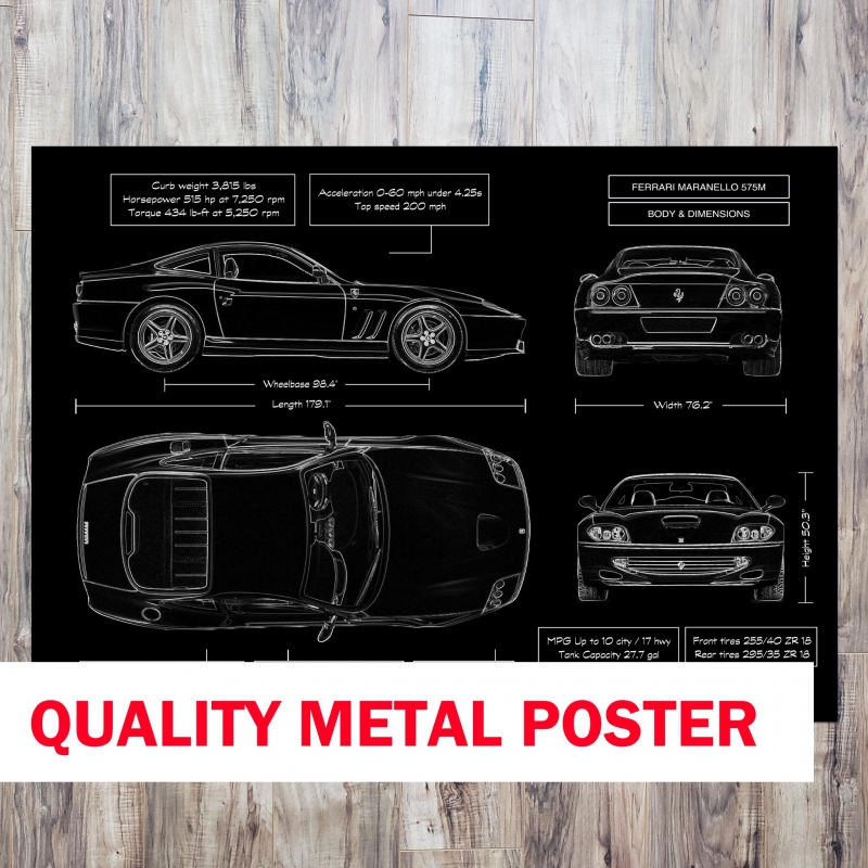 This isn’t just another piece of décor—it’s a premium metal-printed tribute to the legendary Grand Tourer that is the Ferrari 575M Maranello. Printed directly onto brushed metal, the poster features a sophisticated matte finish that frames performance as art. Tailored for that hard-to-buy figure in your life, it becomes truly theirs when you add their name or VIN at no extra cost—this is personalization meets prestige.