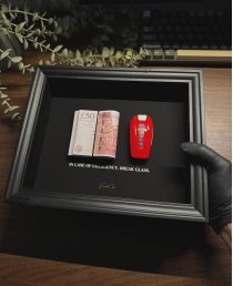 This 25x20 cm luxury frame by FramedCash pairs a stack of British £50 notes with a Ferrari key, set against a deep black backdrop. It’s more than wall art—it’s a statement of ambition, resilience, and the lifestyle reserved for those who never settle.
