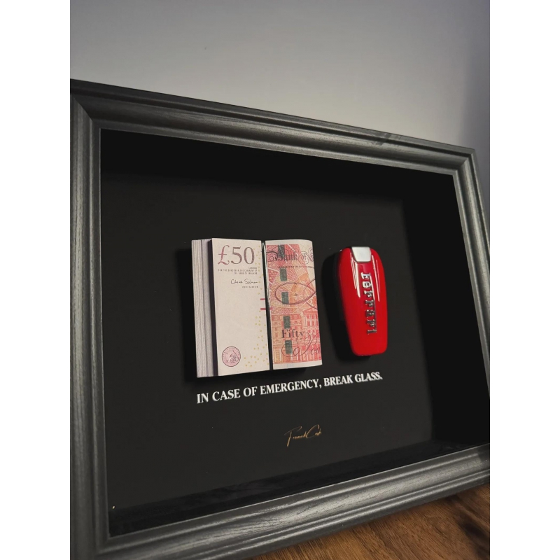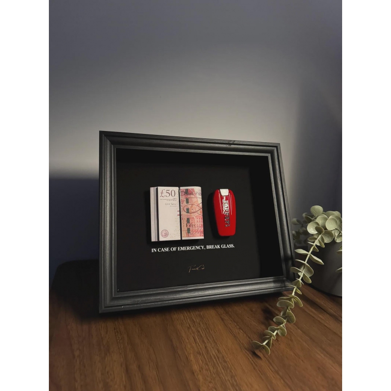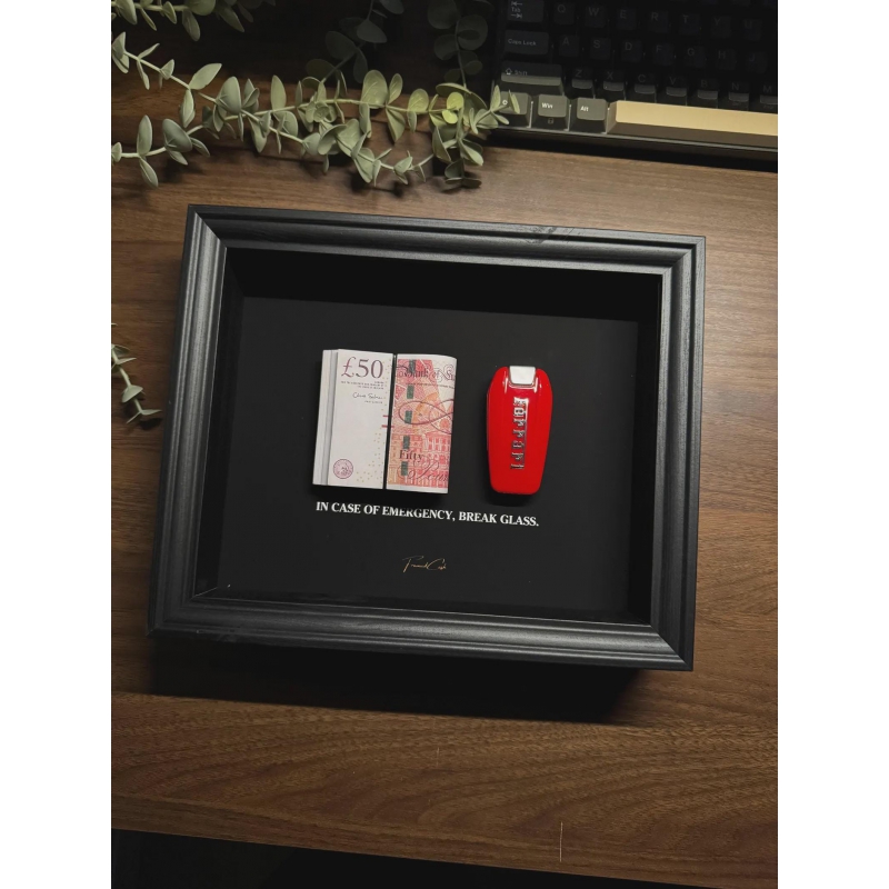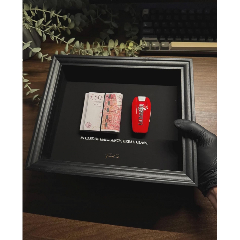 In Case of Emergency Ferrari Key & Pound Cash Frame by FramedCash | 25x20cm Luxury Money Wall Art