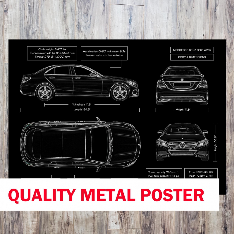 This precision-crafted metal wall poster celebrates the Mercedes‑Benz C300 W205 (2014–2021) — a luxury sedan that blends refinement with performance. Printed directly on premium brushed metal, it features a sleek matte finish that captures every line and detail, transforming engineering into striking wall décor. For the gear-driven enthusiast, the doctor with discerning taste, or the entrepreneur who lives for refined statement pieces — this gift becomes unforgettable. Customize it free with their name or vehicle VIN, and thanks to the included magnetic mounting system, it’s on the wall in under a minute — no tools, no drilling.