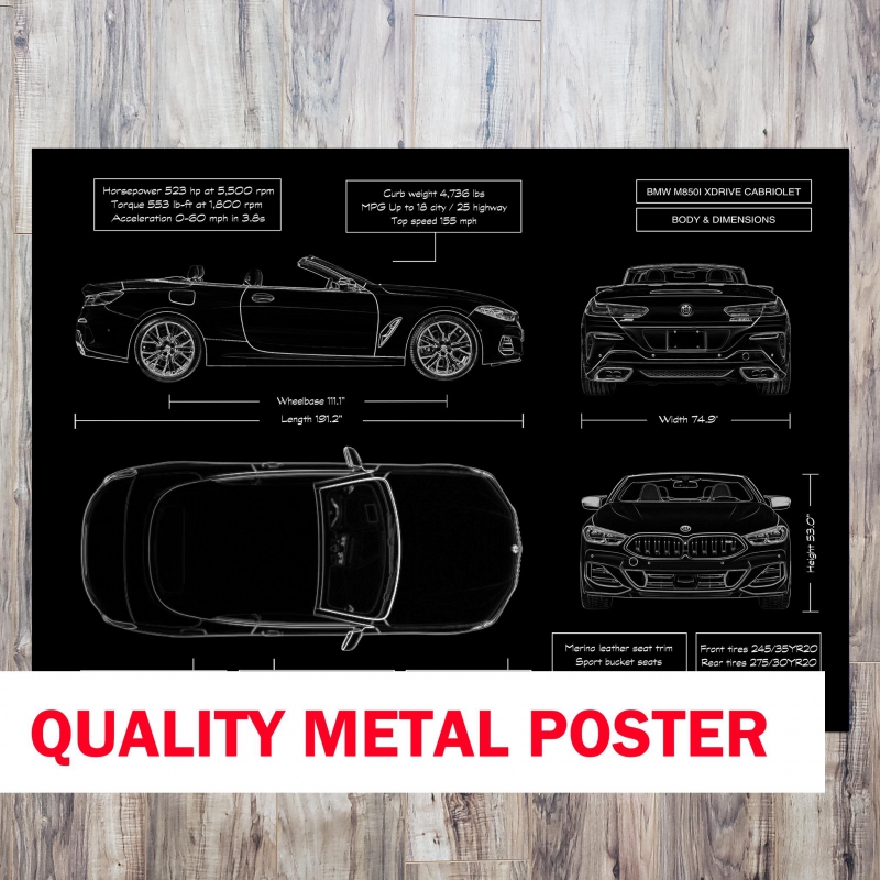 This isn’t just wall décor—it’s an exclusive metal-printed tribute to refined performance and open-air driving. The BMW M850i Cabriolet Metal Poster brings engineering excellence to life, printed directly onto premium brushed metal with a matte finish that rivals gallery-quality art.