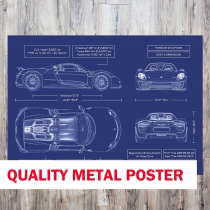 BMW i8 Blueprint Metal Poster – Hybrid Su...
