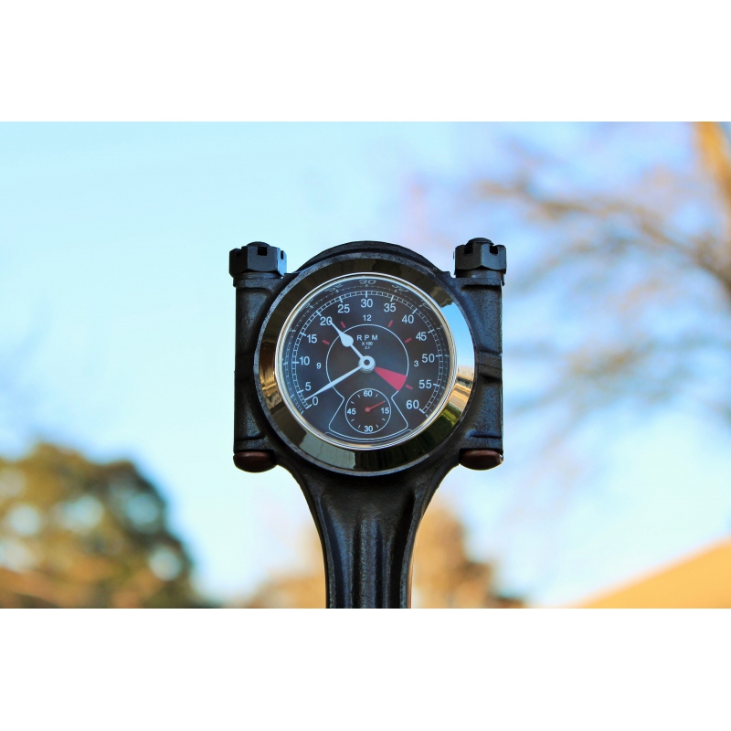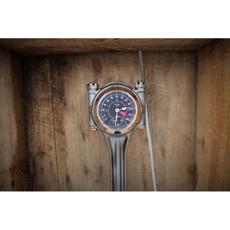 Every aspect of this clock has been thoughtfully designed to bring the feel of the classic British car. From the beautiful Smiths instruments to the deep gloss finish on the piston, this clock captures the essence of the E-Type perfectly.