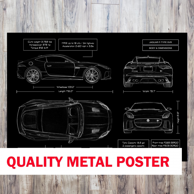 This exceptional metal-printed piece honours the Jaguar F-TYPE SVR (2014-2019) — a car built for adrenaline and design. Printed directly on brushed metal, it features a striking matte finish that transforms performance into sophisticated décor. Ideal for the automotive enthusiast, gearhead, doctor-turned-collector or entrepreneurial driver, this artwork becomes personal when you add the recipient’s name or their car’s VIN at no extra cost. With the included magnetic mounting system, you’ll have it mounted in under a minute — no tools, no drilling, just instant prestige.