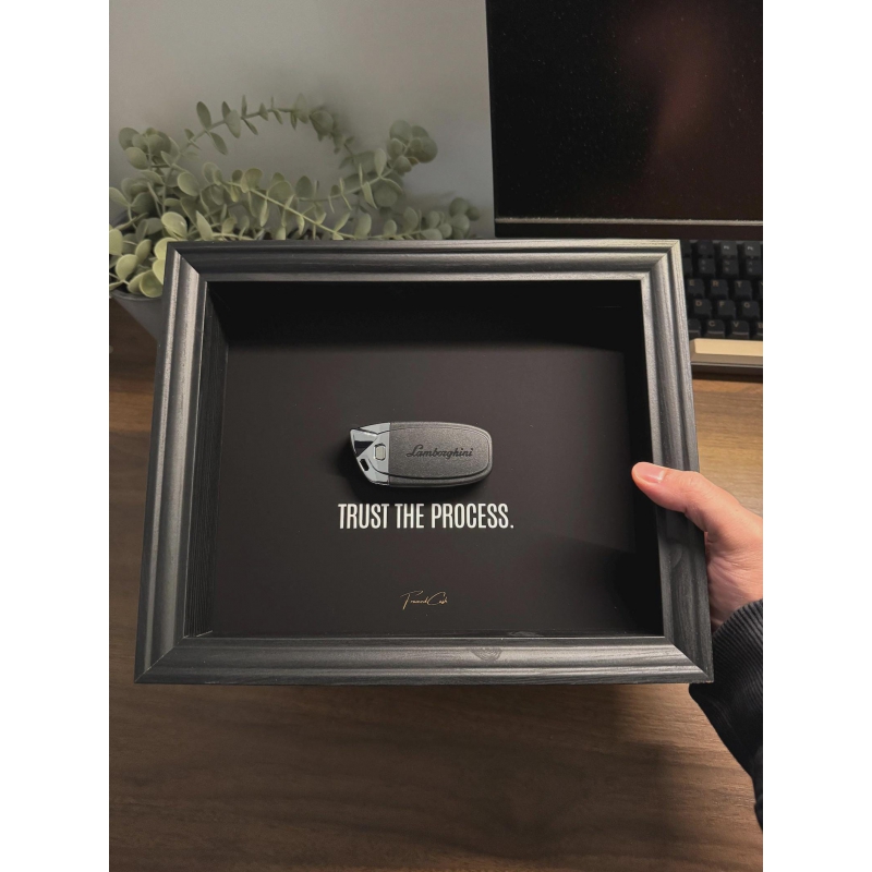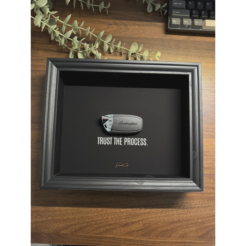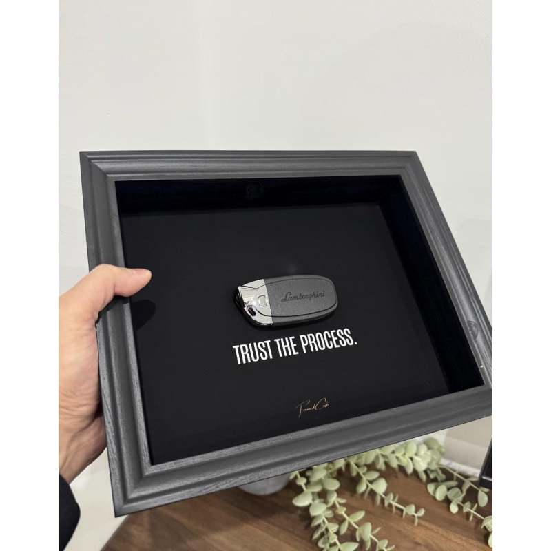 This 25x20 cm handcrafted frame by FramedCash features a sleek Lamborghini key mounted on a minimalist black background, paired with the powerful reminder that patience and discipline always pay off. A bold décor piece that fuels ambition daily.