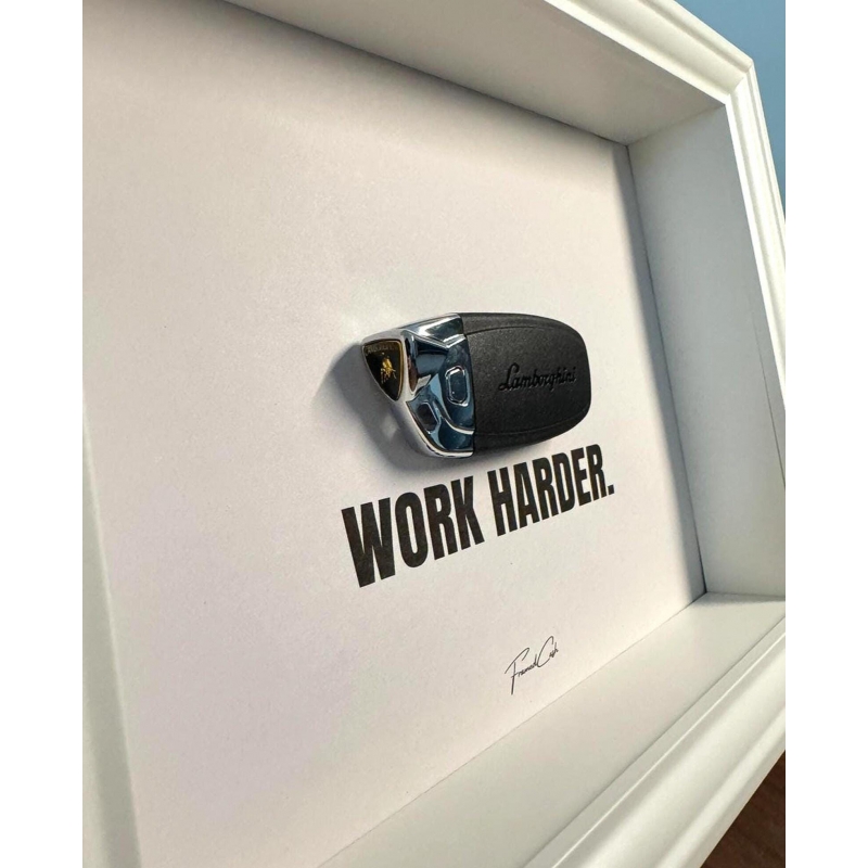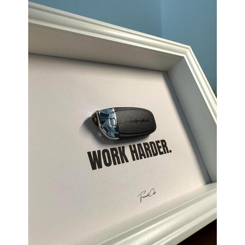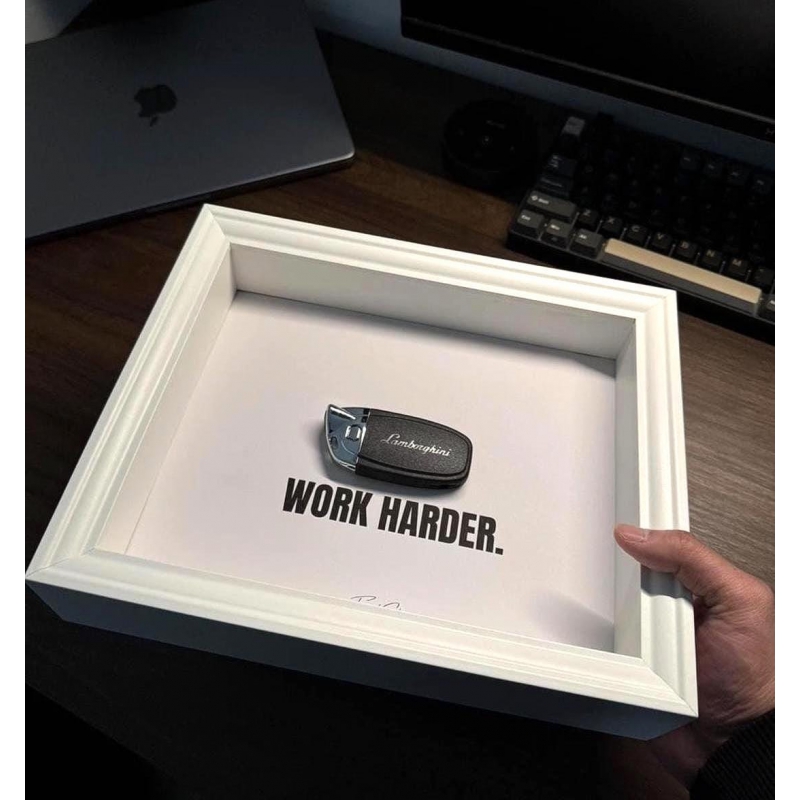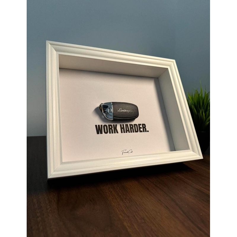 This minimalist frame from @FramedCash features a classic Lamborghini key mounted boldly above the words that say it all: