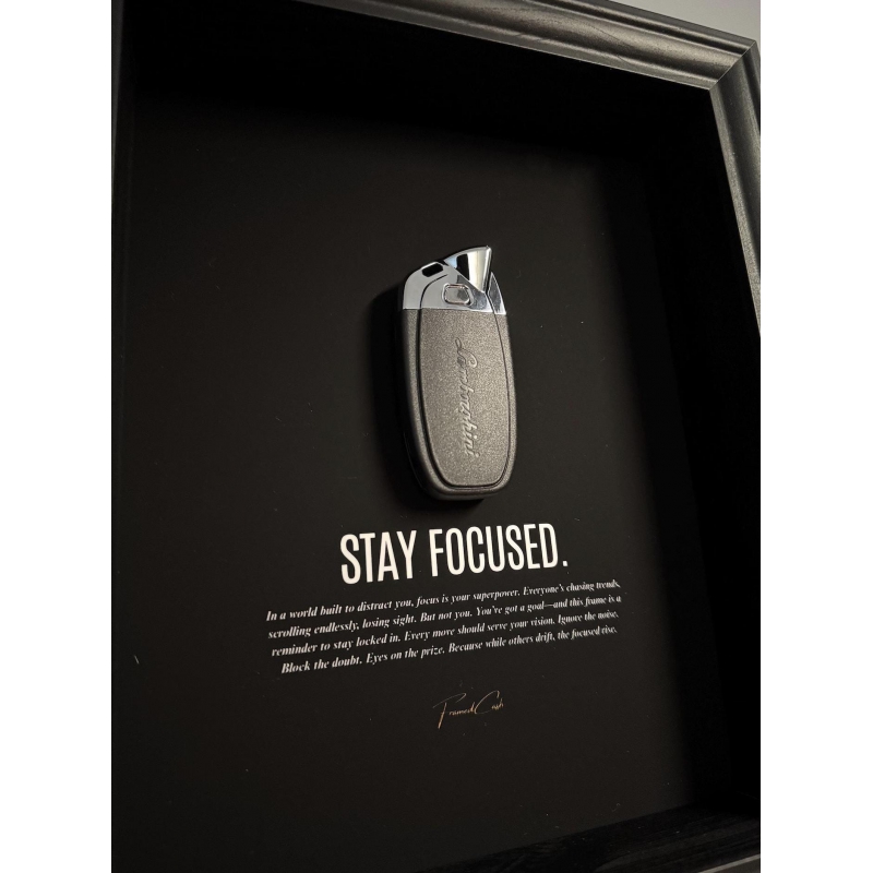This bold 25x20 cm piece by FramedCash features a Lamborghini key on a sleek black background, under a no-nonsense reminder to block out the noise and stay dialed in on your lane.