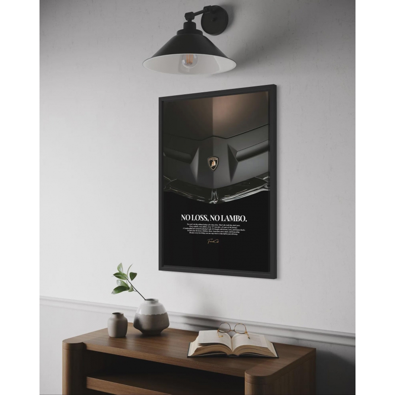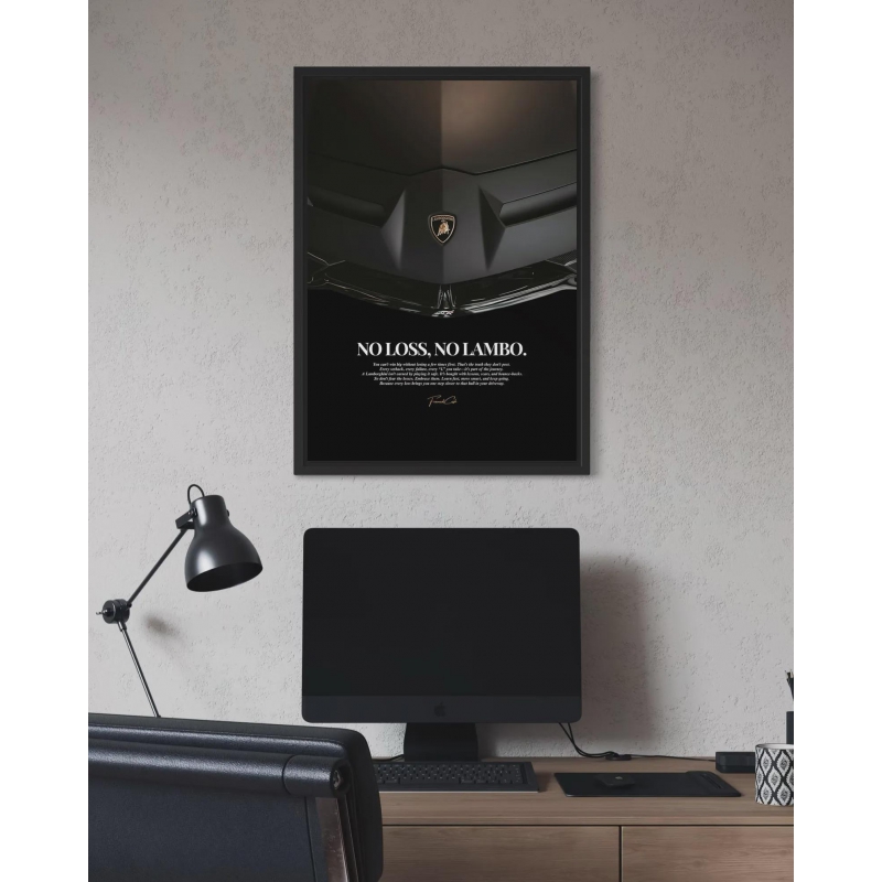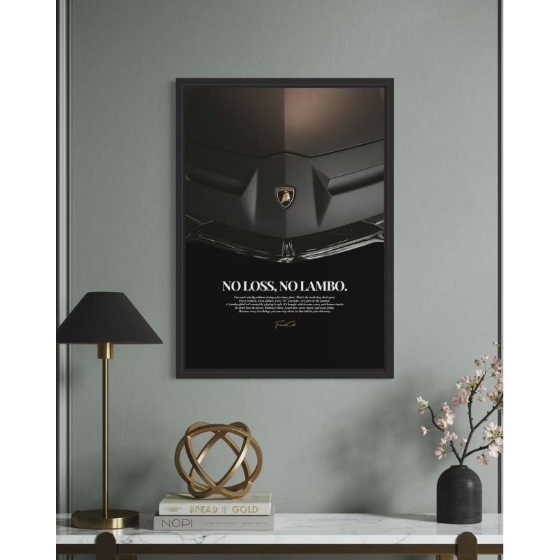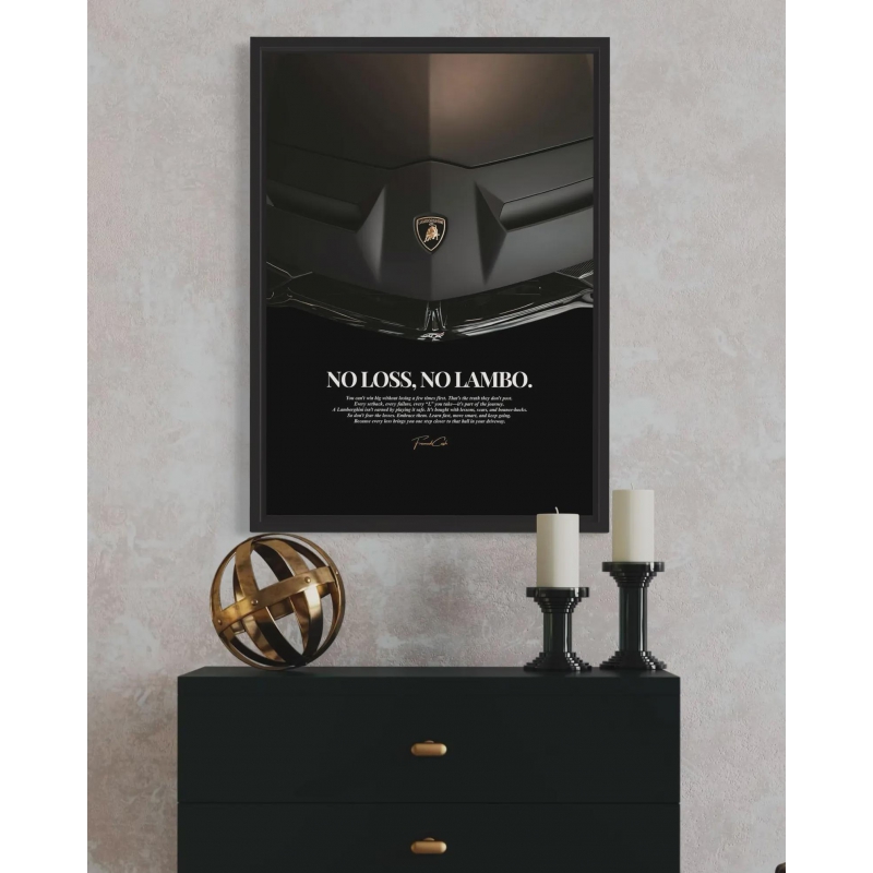 Every setback is a setup for a comeback. This bold motivational poster reminds you that failure isn’t the end—it’s part of the path. “No Loss, No Lambo.” Success is built on lessons, resilience, and the grind that most people avoid.