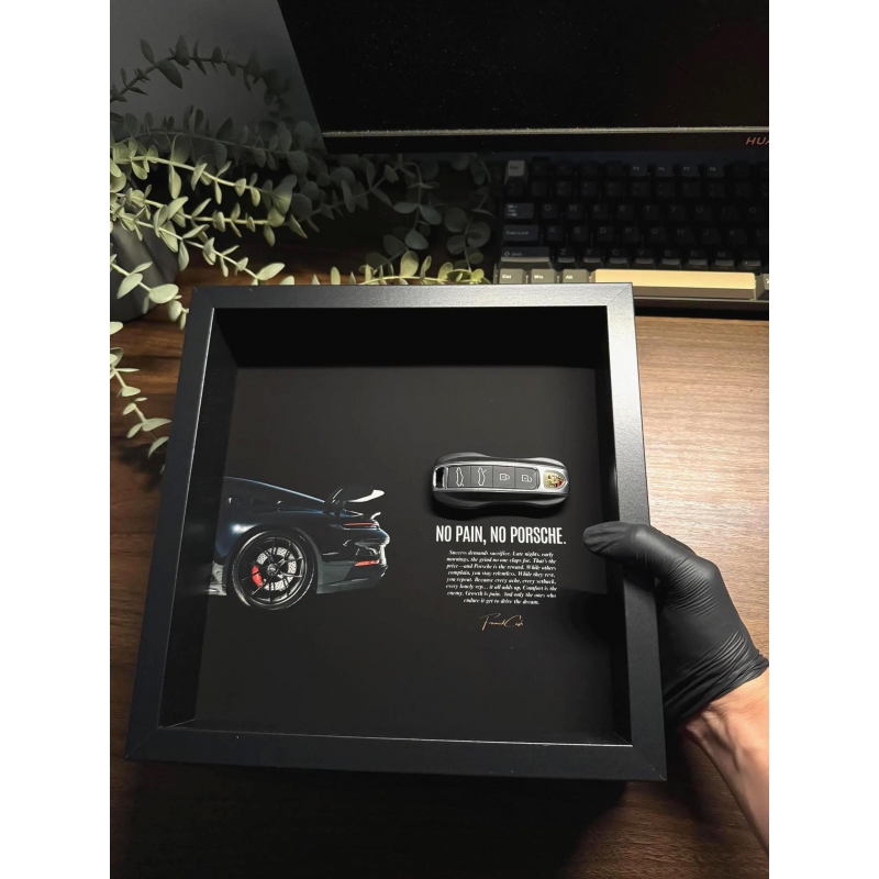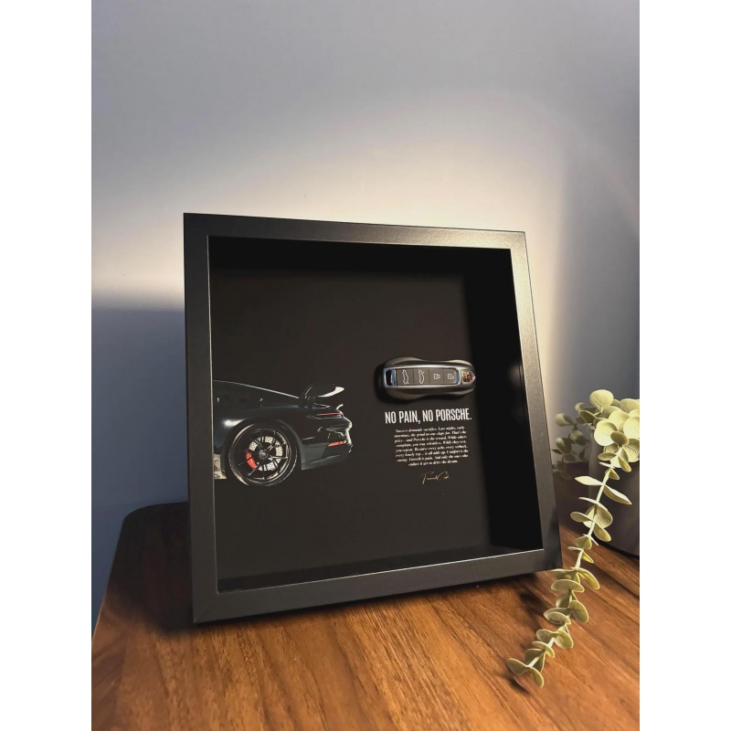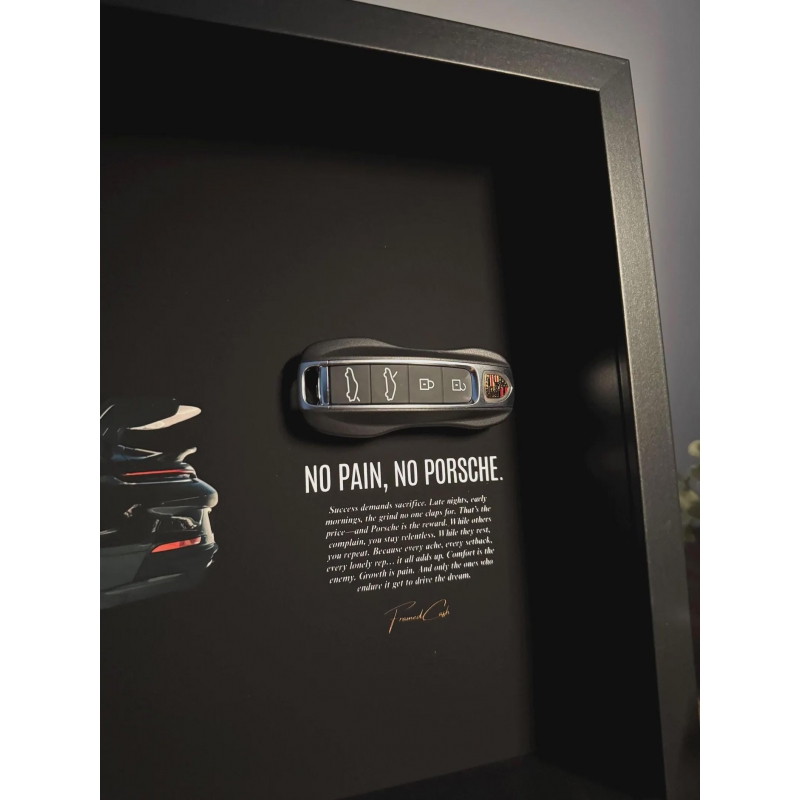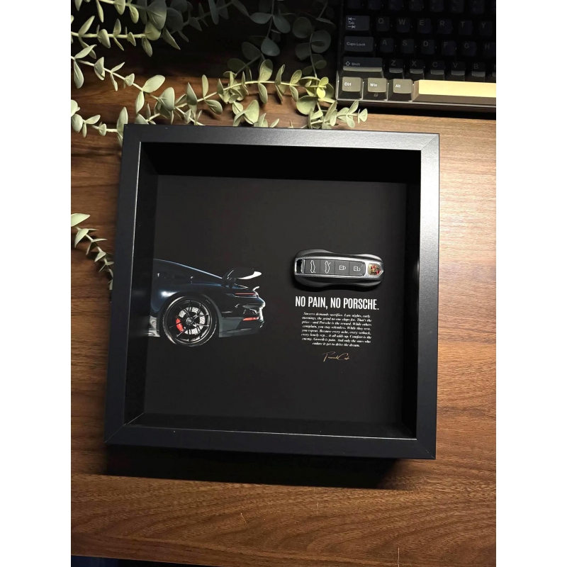 This 25x25 cm handmade frame by FramedCash features a Porsche key mounted alongside a sleek Porsche visual and motivational text. It’s more than décor — it’s a reminder that every late night, early morning, and ounce of discipline fuels the road to success.