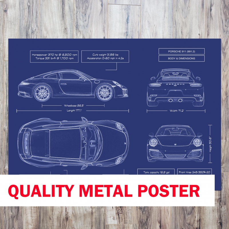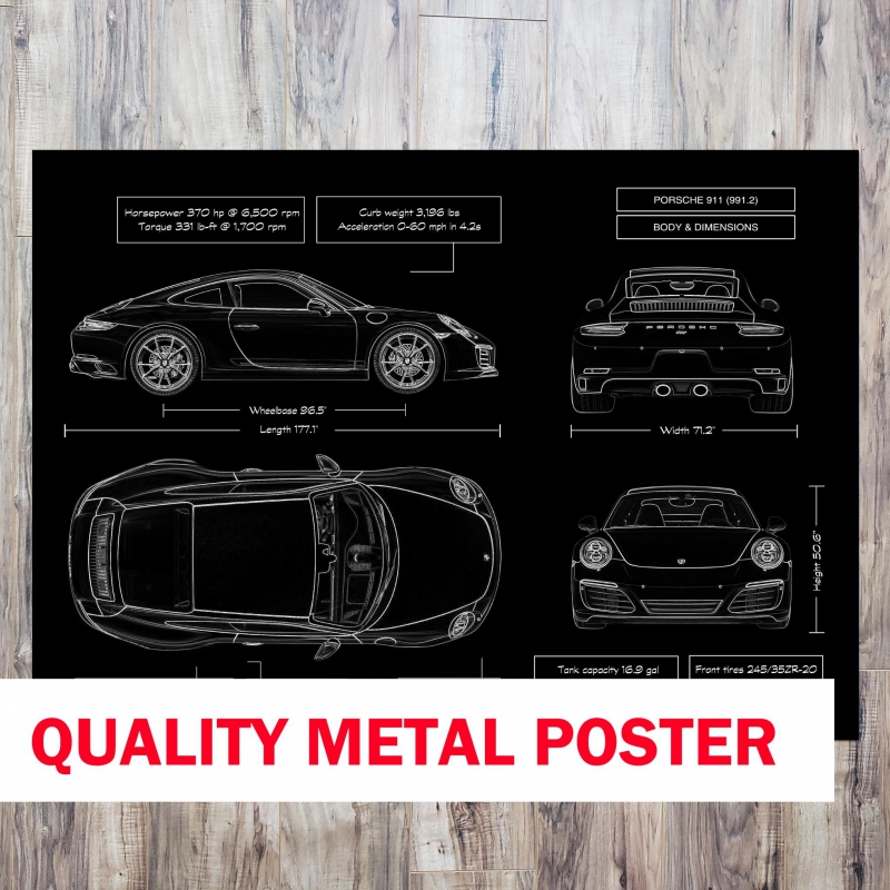 This exceptional metal-printed piece celebrates the Porsche 911 Coupe 991.2 (2016-2019) — the evolution of an icon with turbo-charged power and timeless style. Printed directly on brushed metal, it delivers a gallery-quality matte finish that brings every line, vent, and silhouette into sharp focus. Whether you hang it in a garage, executive office, man cave or showroom, this artwork makes a bold impact. For the gearhead, doctor, lawyer or entrepreneur who values refined power — personalize it free with their name or the car’s VIN. The included magnetic mounting system means you’re ready to display in under a minute—no tools, no drilling—just ready to dominate the wall.