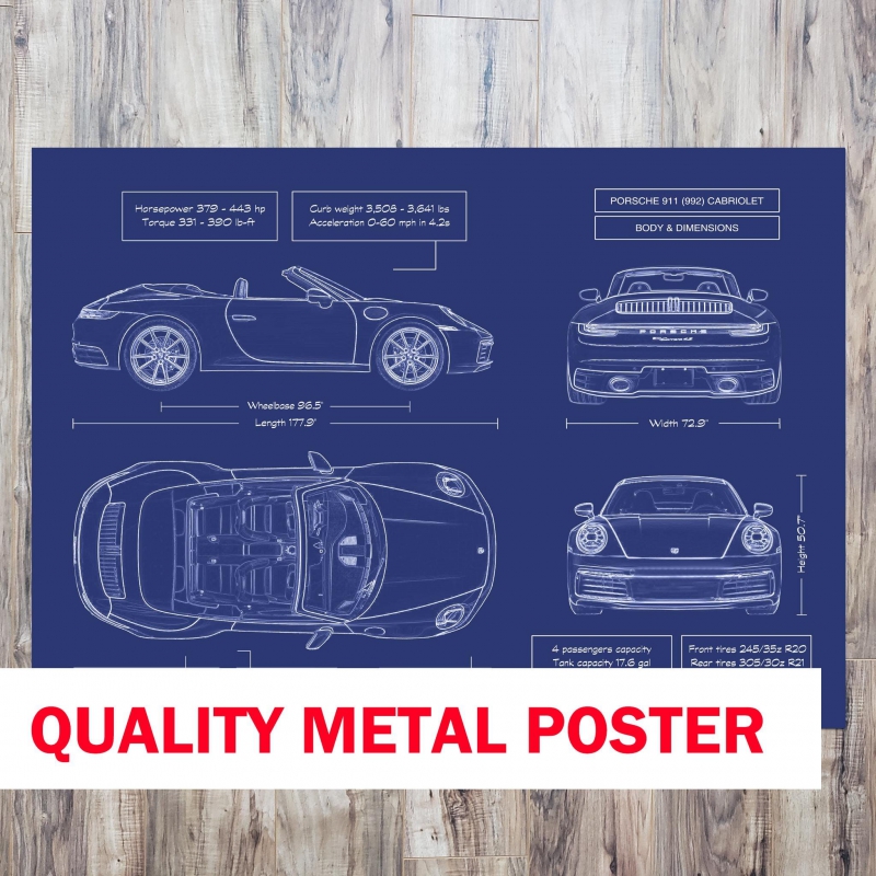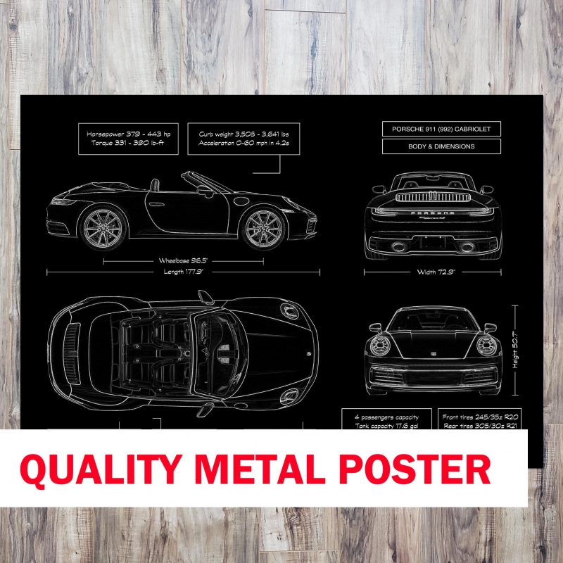 Celebrate the open-top elegance of the Porsche 911 992 Cabriolet (2020-2023) with this premium metal-printed piece. Printed directly on brushed metal, it features a rich matte finish that elevates every line and contour into gallery-quality décor. Whether you’re outfitting a garage, man cave, upscale office or showroom, this artwork delivers style and prestige. For gearheads, car lovers, entrepreneurs or professionals who know performance, it’s the perfect gift with that personal touch — customize it at no extra cost with their name or the car’s VIN. And with the included magnetic mounting system, it’s mounted in under a minute—no tools, no drilling, just impact.