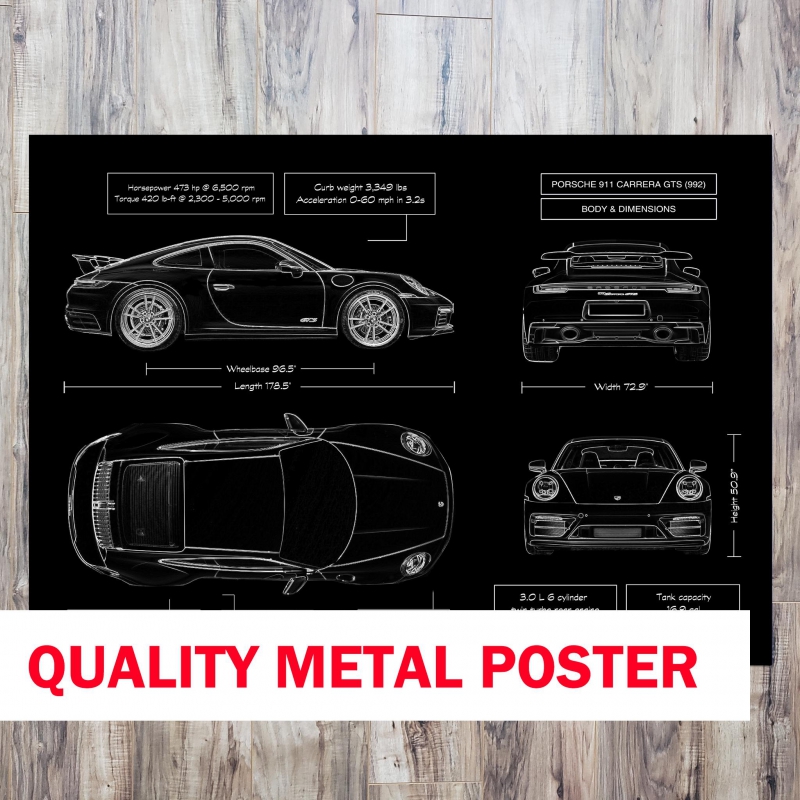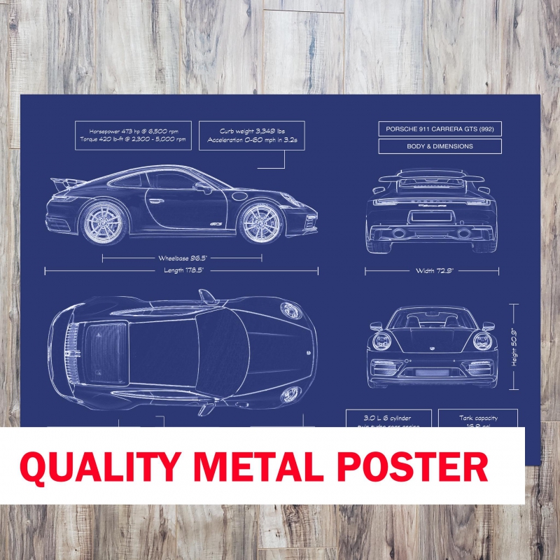 This premium metal-printed artwork celebrates the Porsche 911 Carrera GTS (992 generation, 2020-2024) — a supercar forged for those who appreciate engineering excellence and driving emotion. Printed directly onto brushed metal, it features a sleek matte finish that elevates every sculpted curve and bold detail into museum-quality décor. Whether it takes center stage in your garage, executive office, man cave or showroom, it doesn’t just hang—it makes a statement.