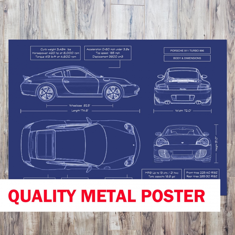 This premium metal-printed piece honors the legendary Porsche 911 Turbo (996) (2000-2005) — a milestone supercar whose icon status resonates with collectors and enthusiasts alike. Printed directly on premium brushed metal, it delivers a deep matte finish that transforms every curve, vent and silhouette into a statement of precision engineering. Whether displayed in a garage, executive office, man-cave or stylish showroom, this artwork carries legacy and impact. Make it personal—add the recipient’s name or their car’s VIN at no extra charge—and thanks to the included magnetic mounting system, you can have it on the wall in under a minute: no tools, no drilling, just instant attitude.
