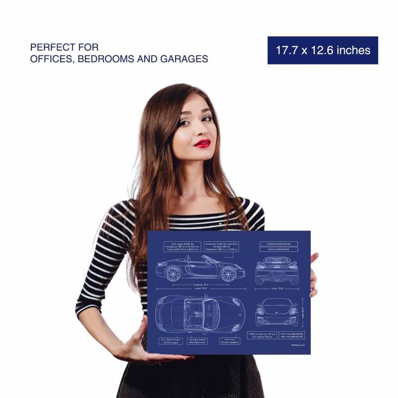 This premium metal-printed poster celebrates the Porsche Boxster 981 Base (2012-2016) — a pure roadster engineered for performance, balance and driving joy. Printed directly on brushed metal, it features a rich matte finish that delivers depth, clarity and gallery-level quality. Whether it’s displayed in your garage, executive office, man cave or showroom, this piece demands attention from all who enter. For the gearhead, the entrepreneur, the doctor with a taste for driving — make it unforgettable by adding their name or the car’s VIN at no extra cost. With the included magnetic mounting system, it goes from box to wall in under a minute — no tools, no drilling — just impact.