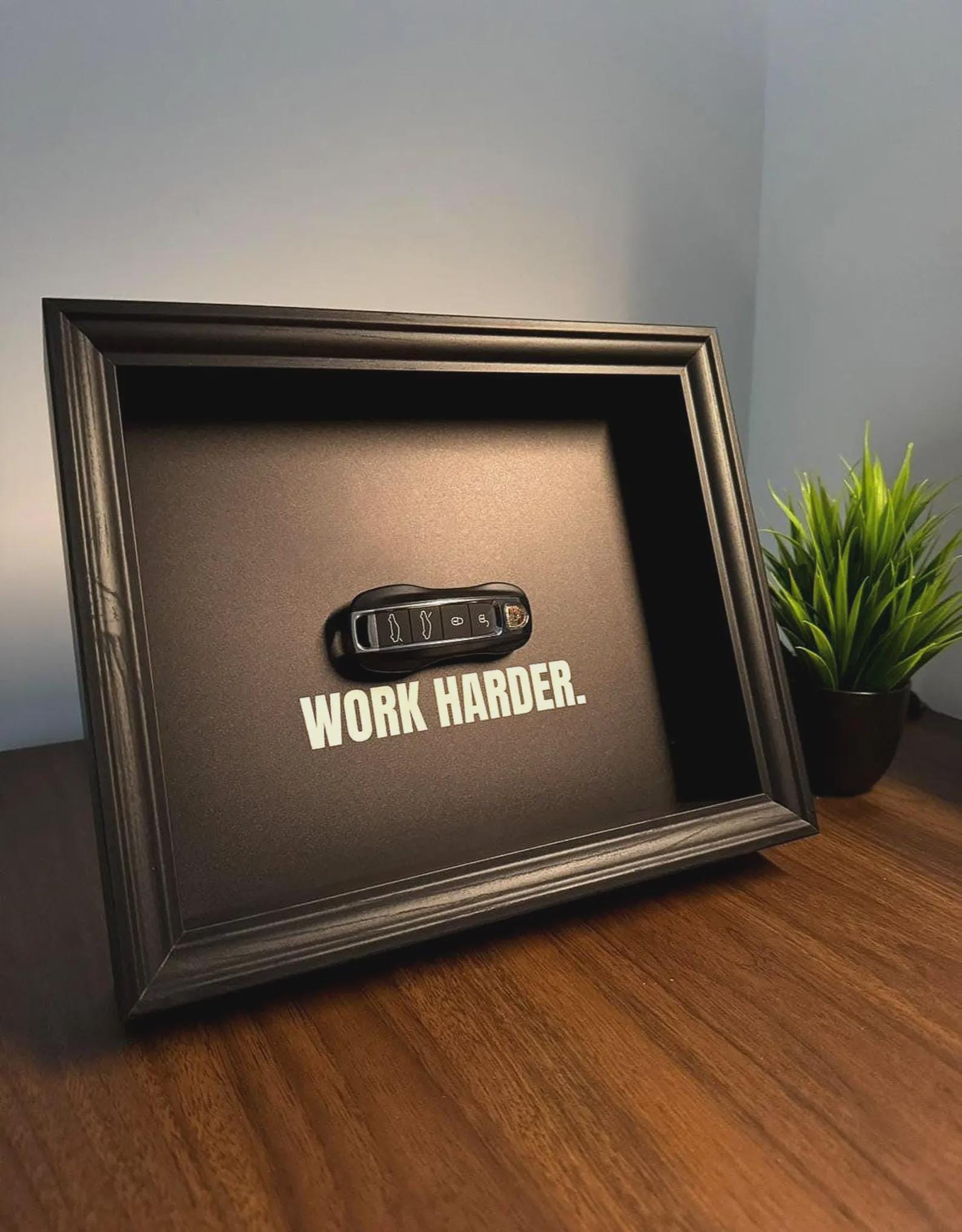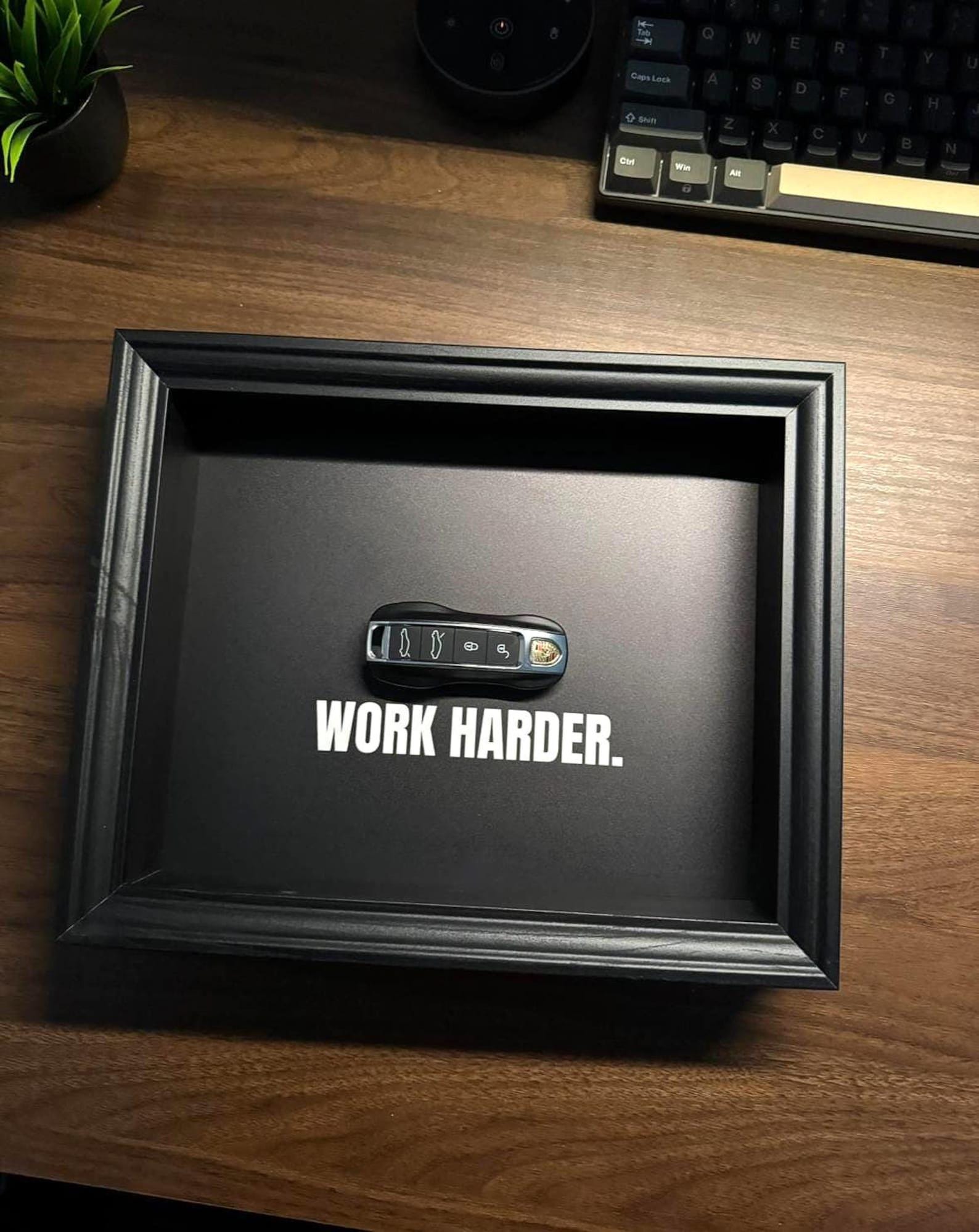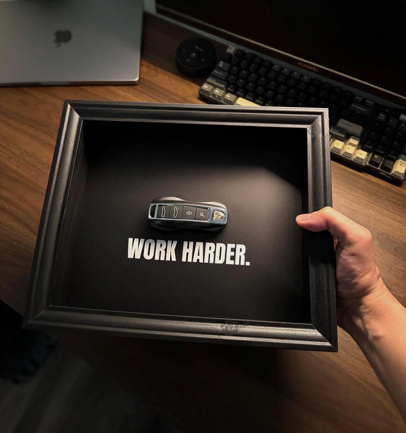 Porsche Key Frame – WORK HARDER Frame by FramedCash | Motivational Wall Art Home decor| (20x25cm) |