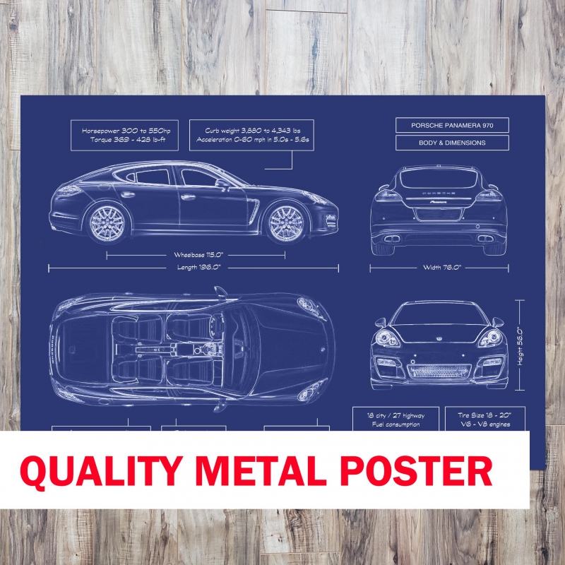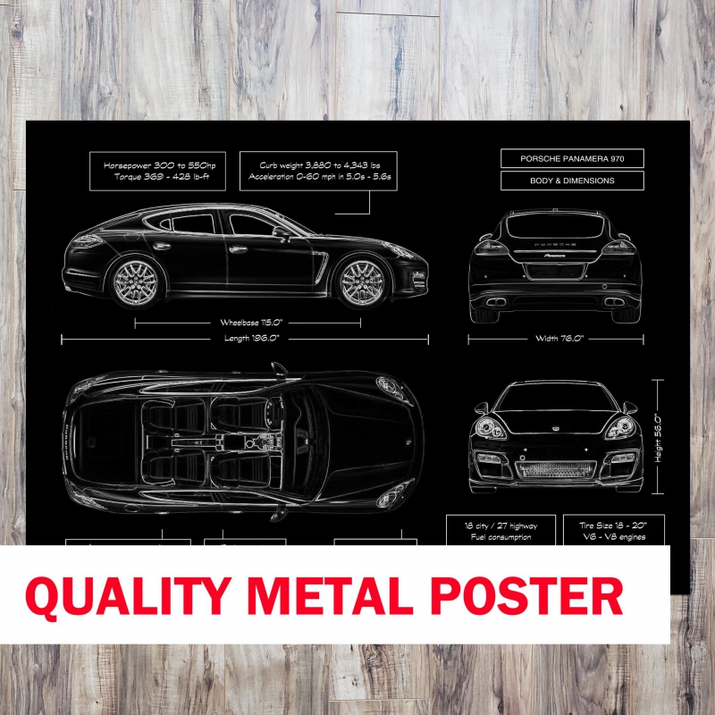 This premium metal-printed piece honours the first-generation Porsche Panamera (970) — produced from 2010 to 2016.