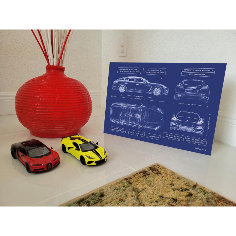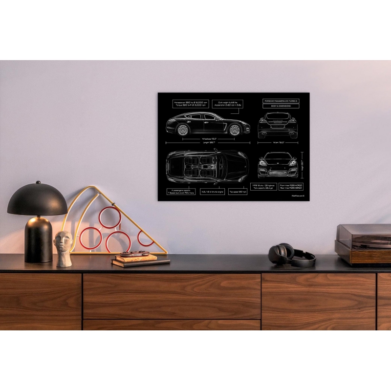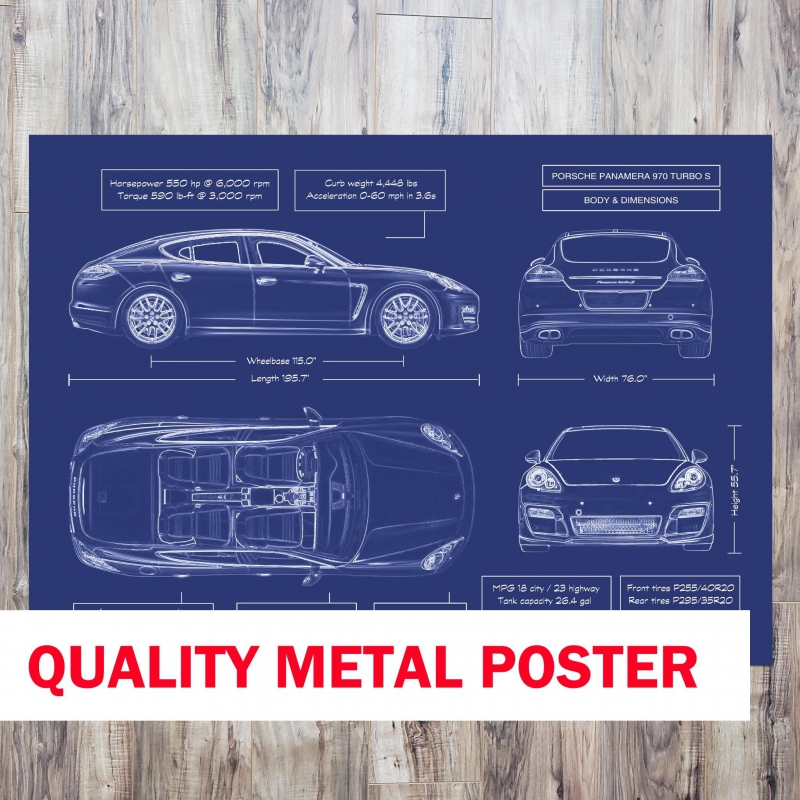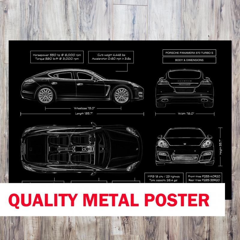 This premium metal-printed artwork honours the first-generation Porsche Panamera 970 Turbo S (2010-2016) — a four-door performance sedan that marries speed and sophistication. Printed directly on brushed metal, it features a refined matte finish that transforms every line and detail into gallery-quality wall décor. Whether it’s hung in your garage, executive office, man cave or showroom, this piece makes an unmistakable statement. For the doctor with ambition, the entrepreneur seeking refinement, or the car lover who knows performance — personalize it with a free name or VIN engraving. Installation is easy and quick with the included magnetic mounting system — hang it in under a minute, no tools required.