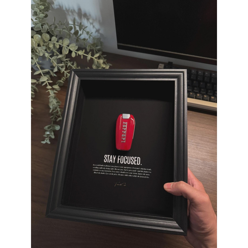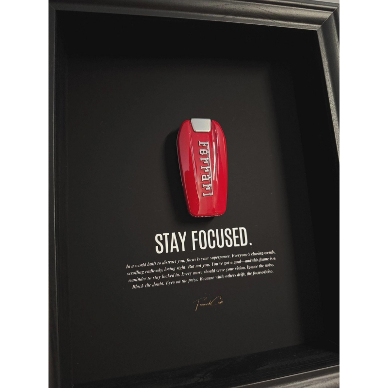 This handcrafted 25x20 cm motivational frame by FramedCash features a striking Ferrari key centered beneath bold typography — a clear message to keep your eyes on your own lane. The engraved quote underneath reminds you that success isn’t about noise — it’s about direction.