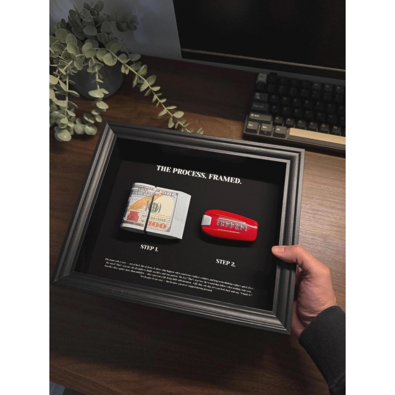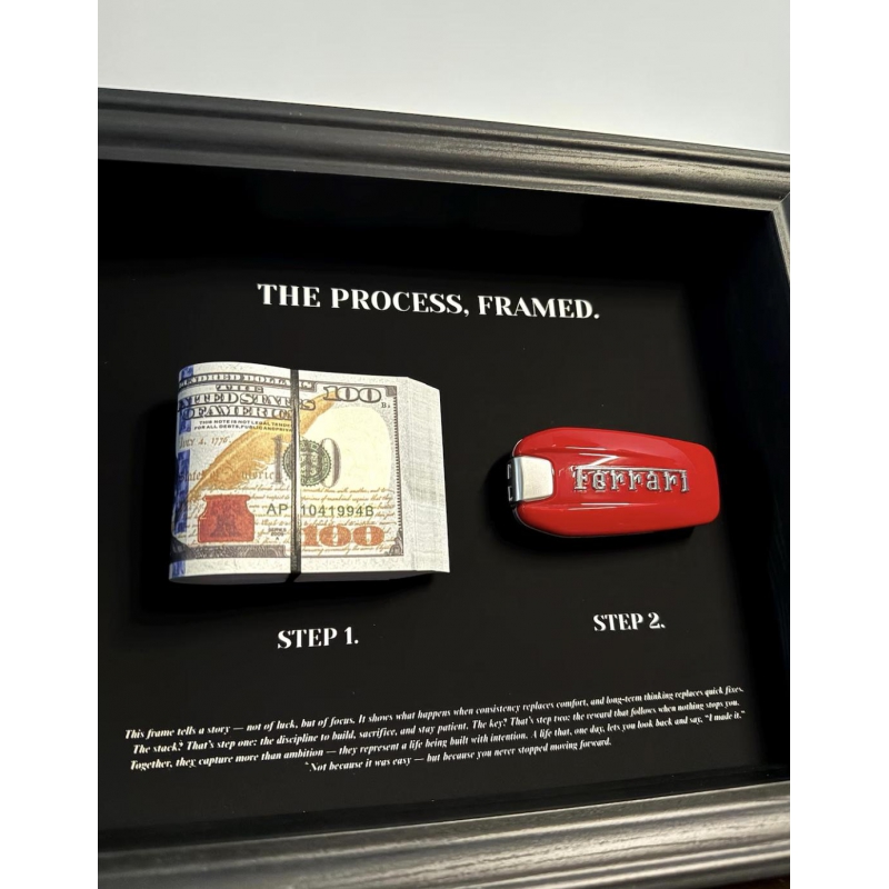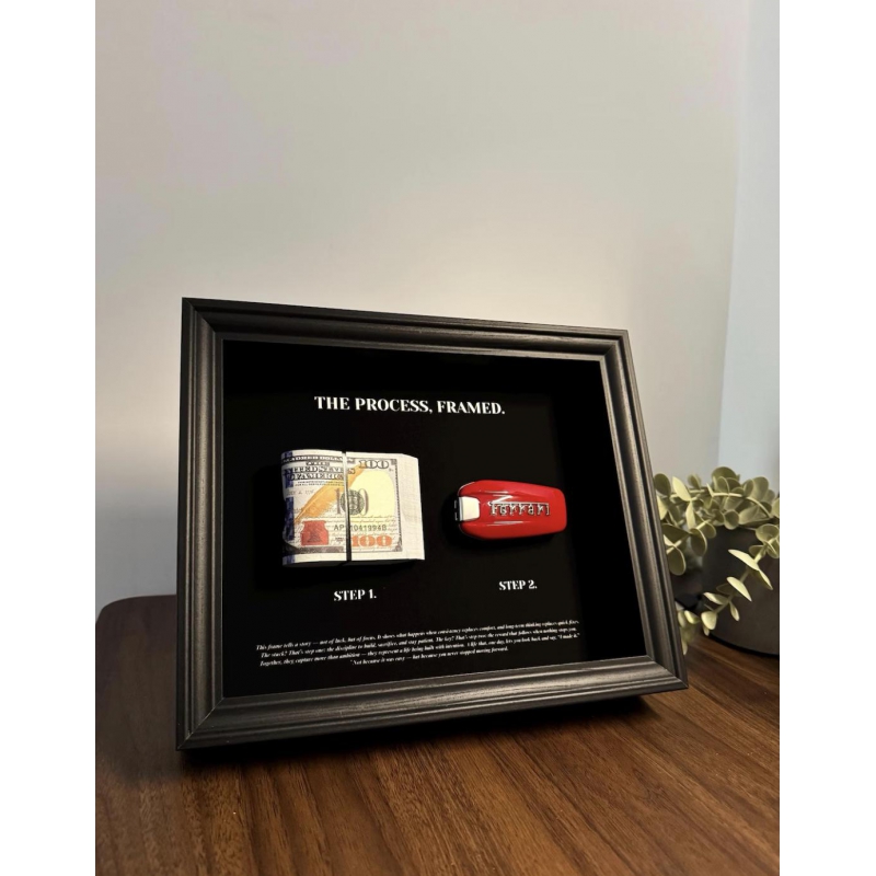 The Process, framed by FramedCash | Ferrari Key & Dollar Cash Stack | Money Wall Art Home Décor | 25x20cm